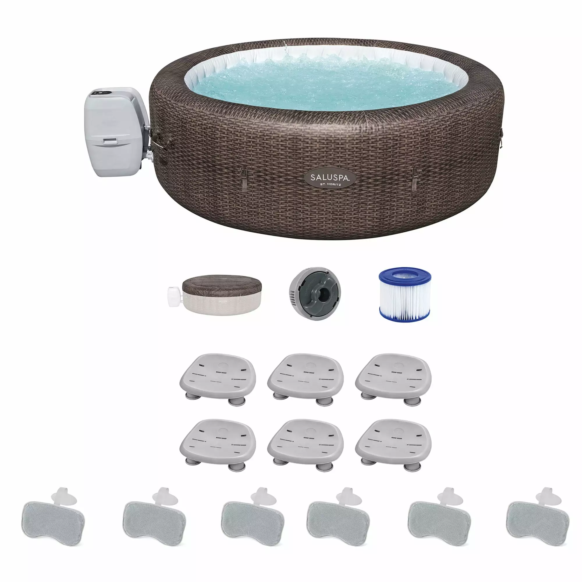 Bestway Coleman St Moritz Hot Tub with 6 SaluSpa Seat & 3 Headrest Pillows