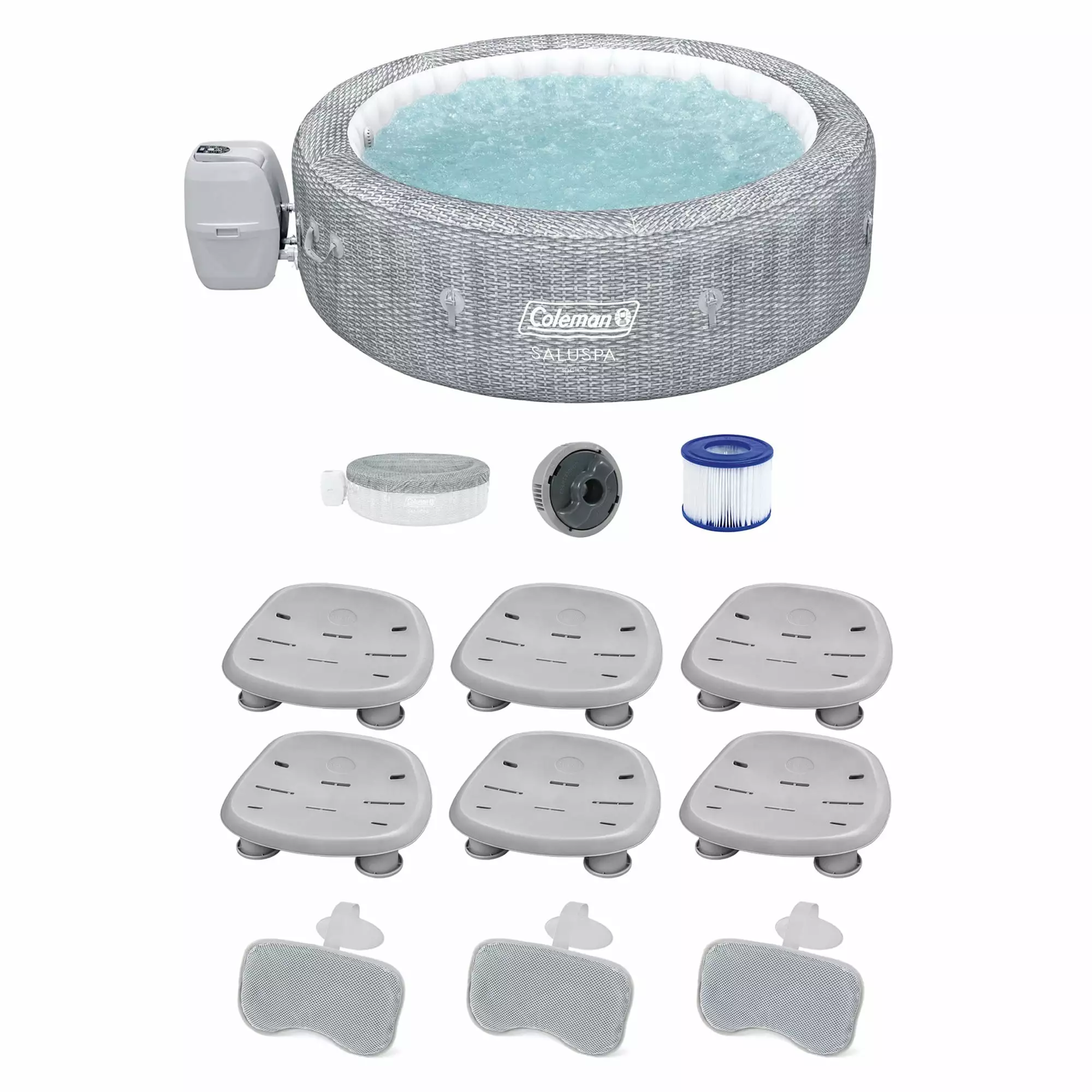 Coleman Hot Tub with 2-Pack Bestway SaluSpa Seat and Headrest Pillow