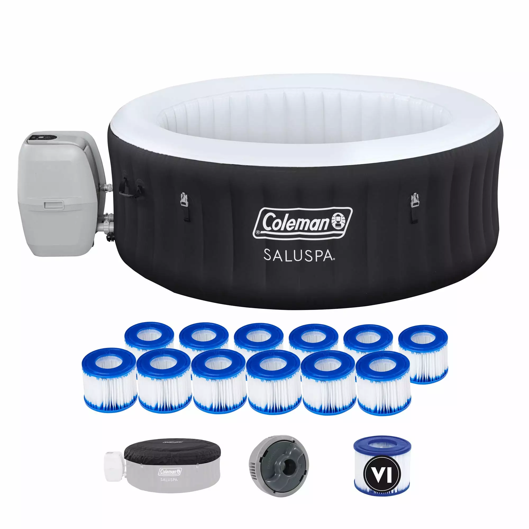 Coleman SaluSpa 4 Person Inflatable Hot Tub Spa with 12 Filter Cartridges