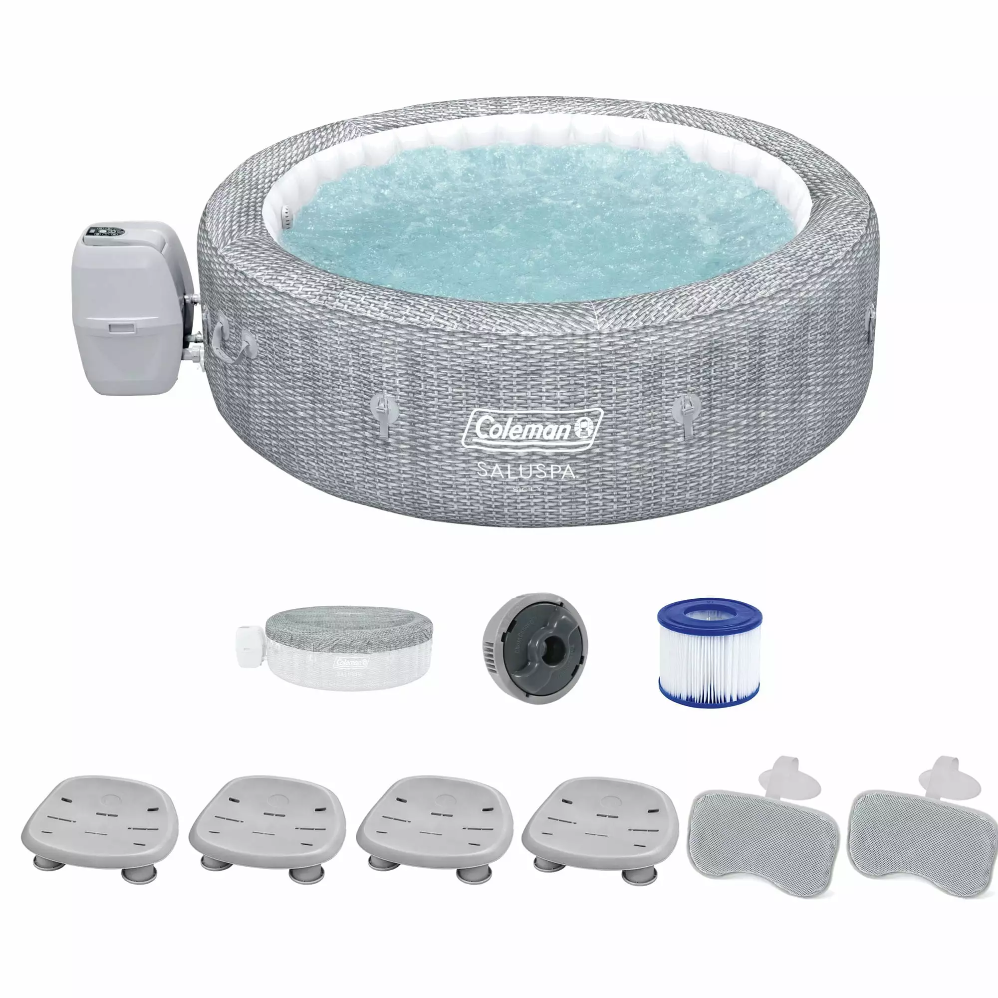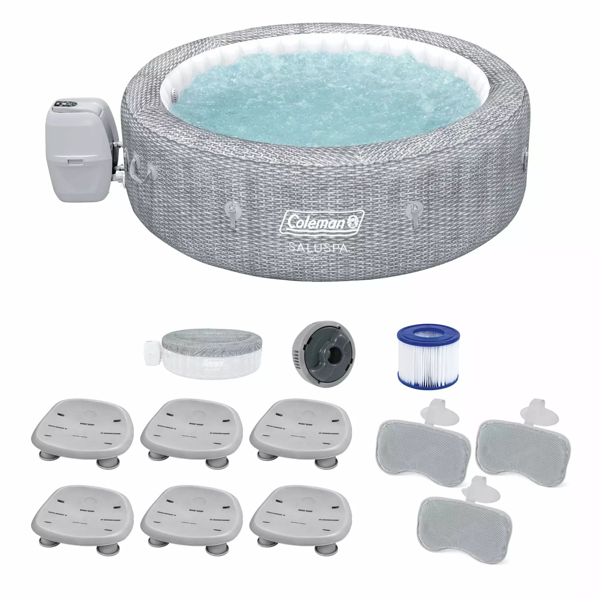 Coleman SaluSpa Sicily AirJet Hot Tub w/6 Bestway Seat & 3 Headrest Pillows