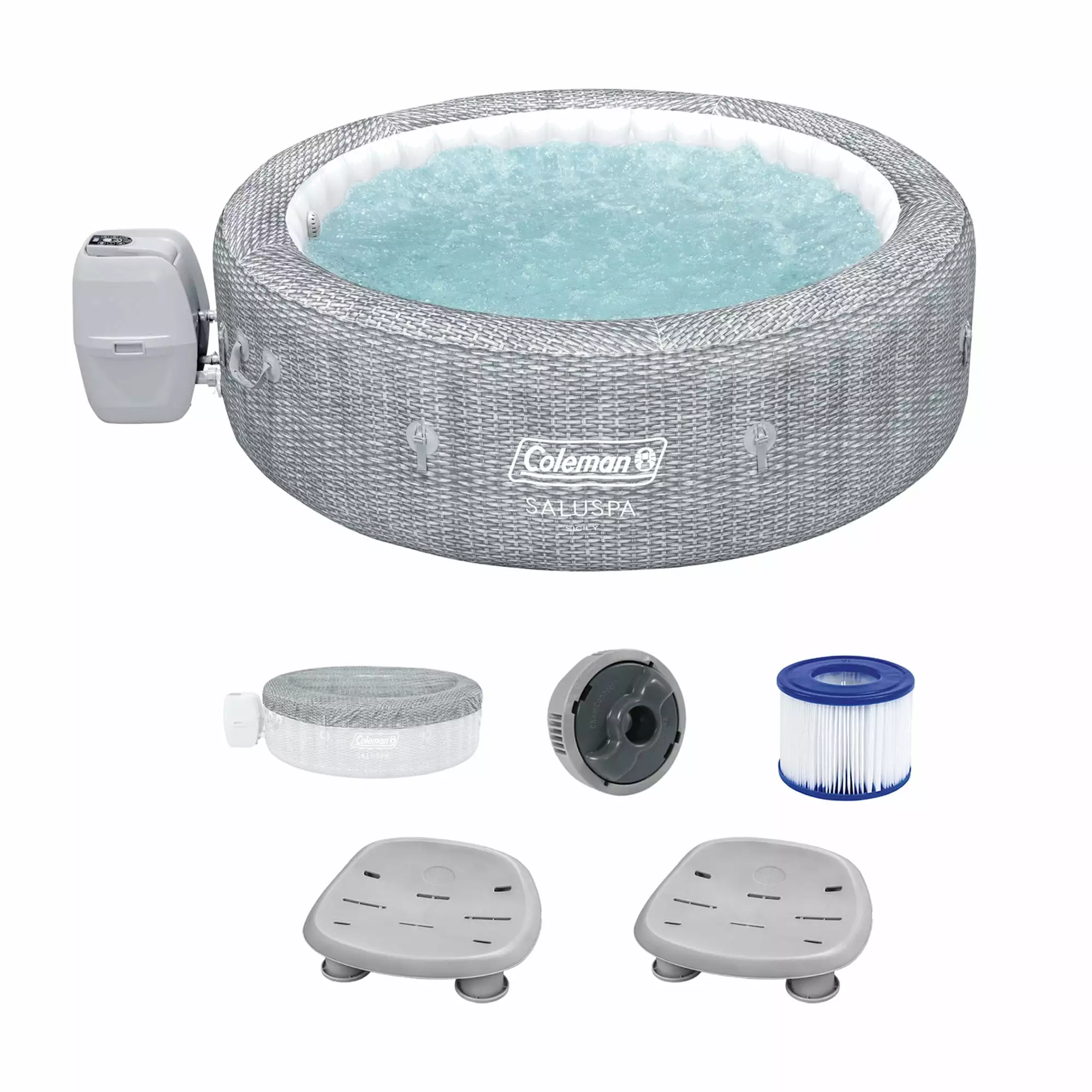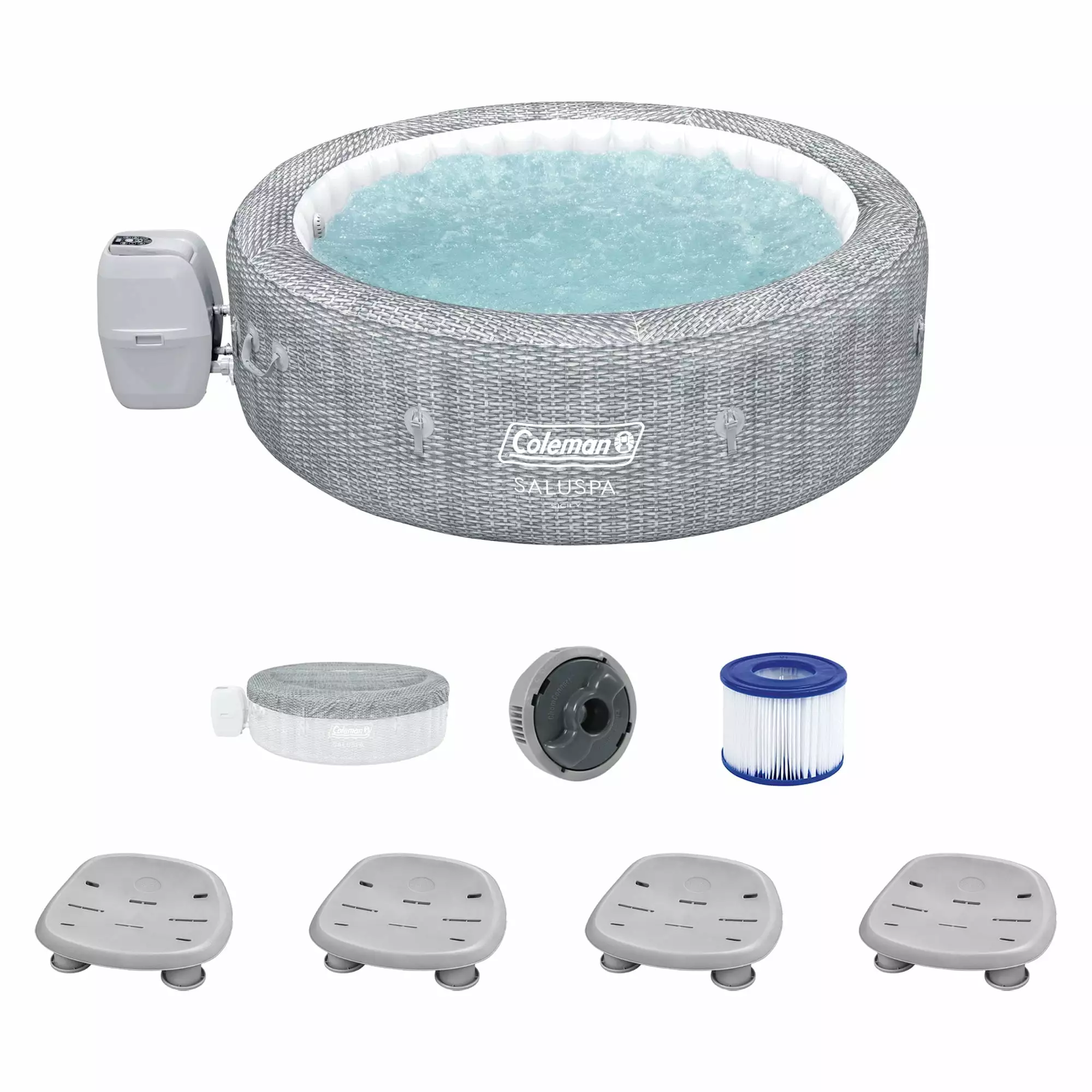 Coleman SaluSpa Sicily AirJet Hot Tub w/Set of 4 Bestway Pool & Spa Seat