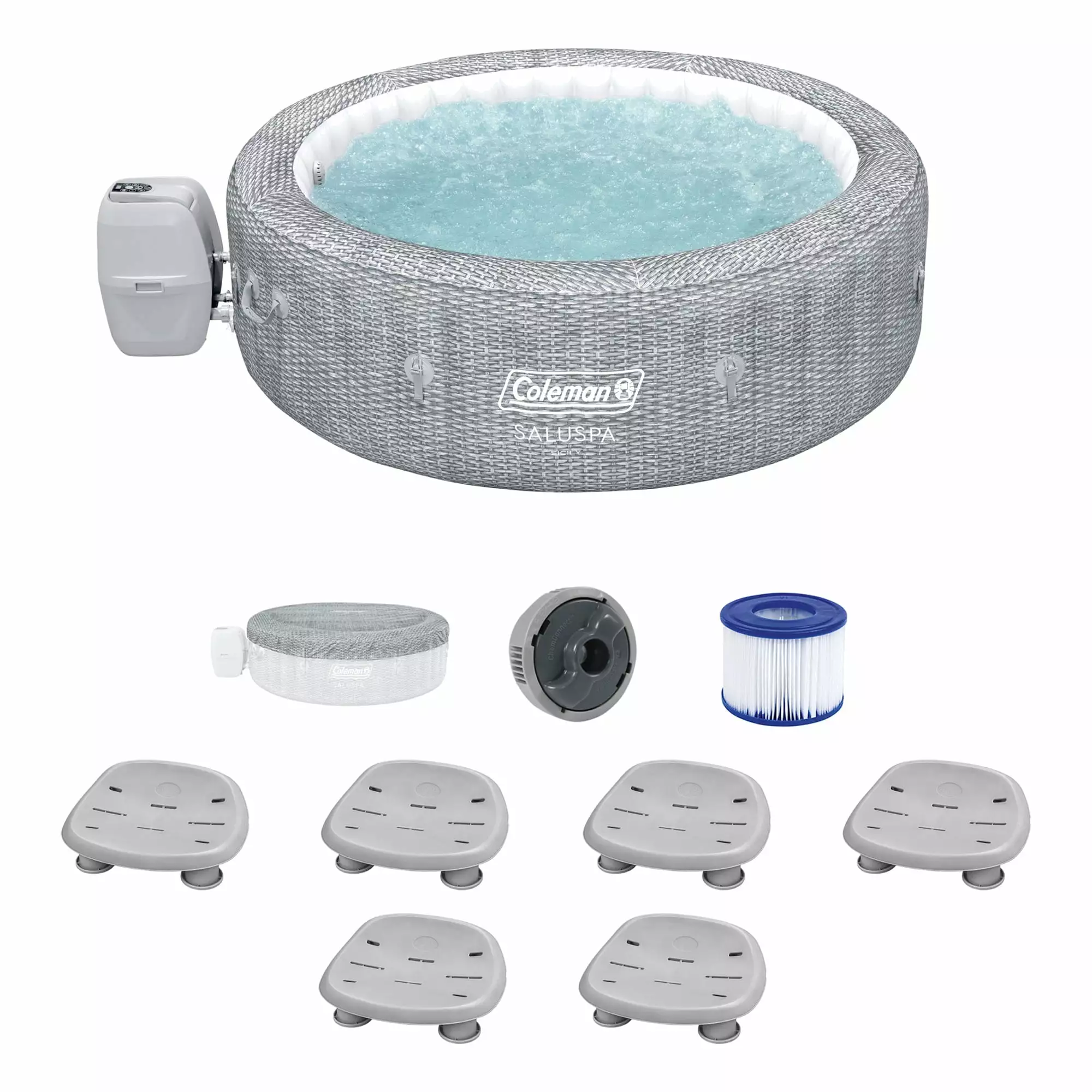 Coleman SaluSpa Sicily AirJet Hot Tub w/Set of 6 Bestway Pool & Spa Seat