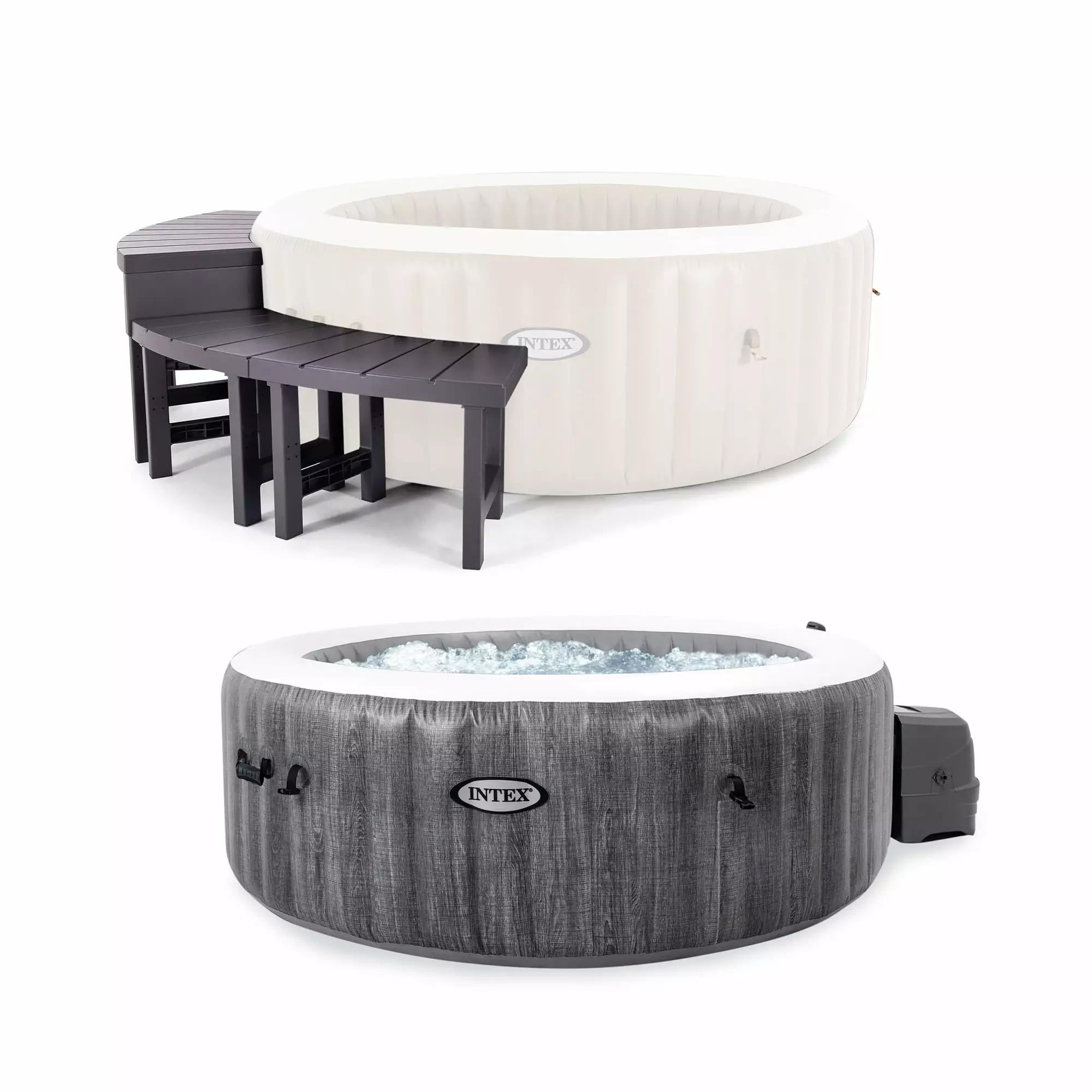 INTEX PureSpa Plus Greywood Deluxe 6 Person Inflatable Hot Tub Spa w/ Jets