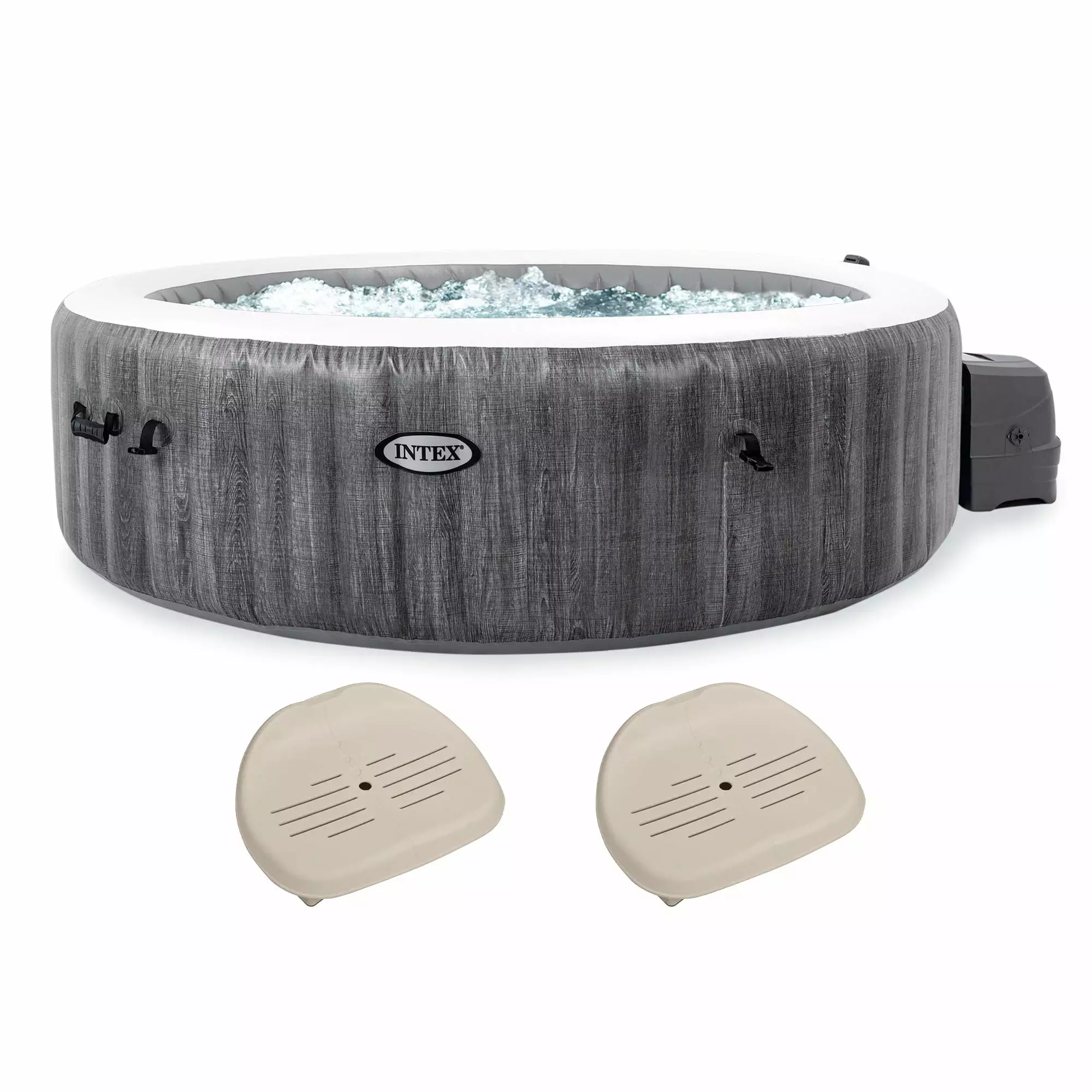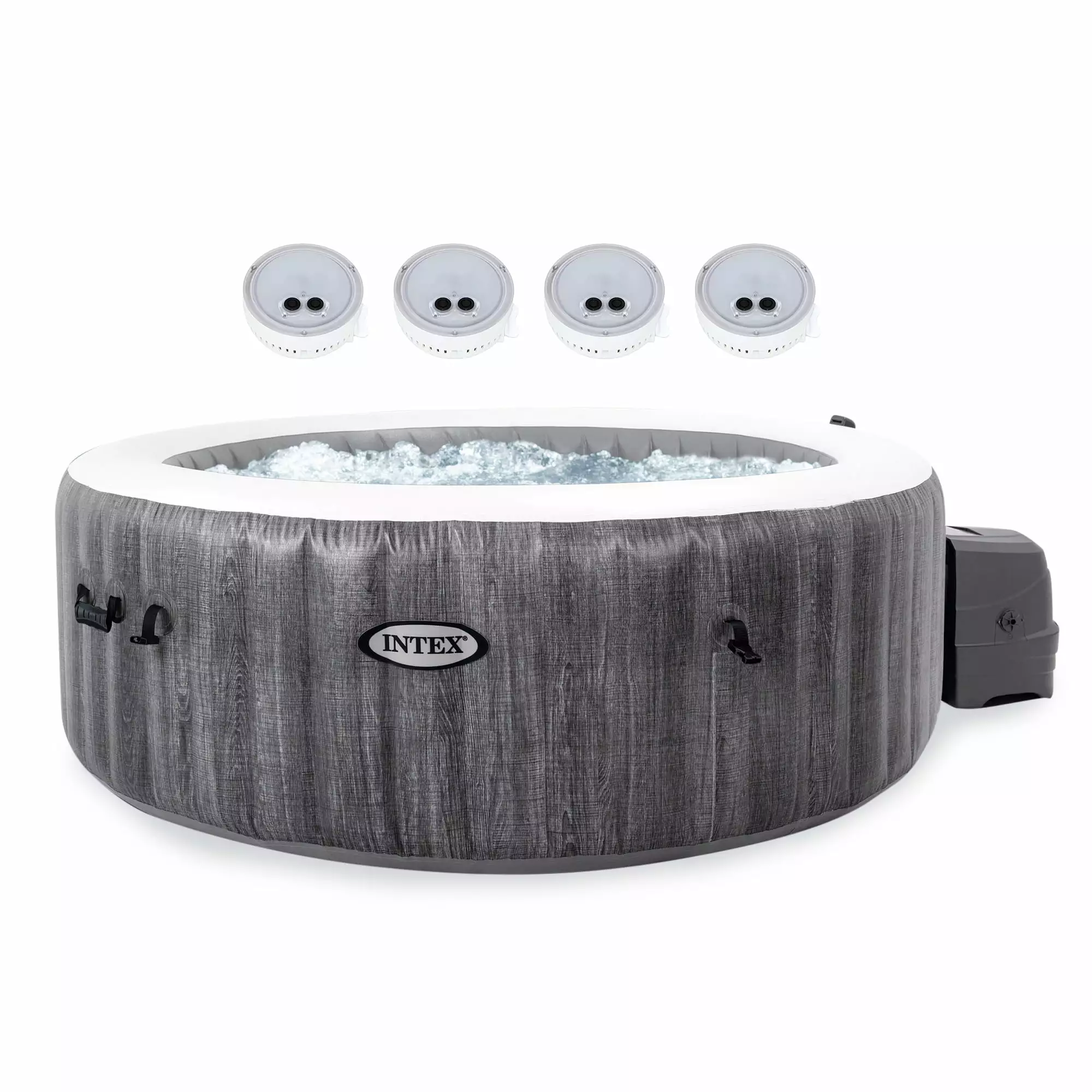 INTEX PureSpa Plus Greywood Deluxe 4 Person Inflatable Hot Tub Spa w/ Jets