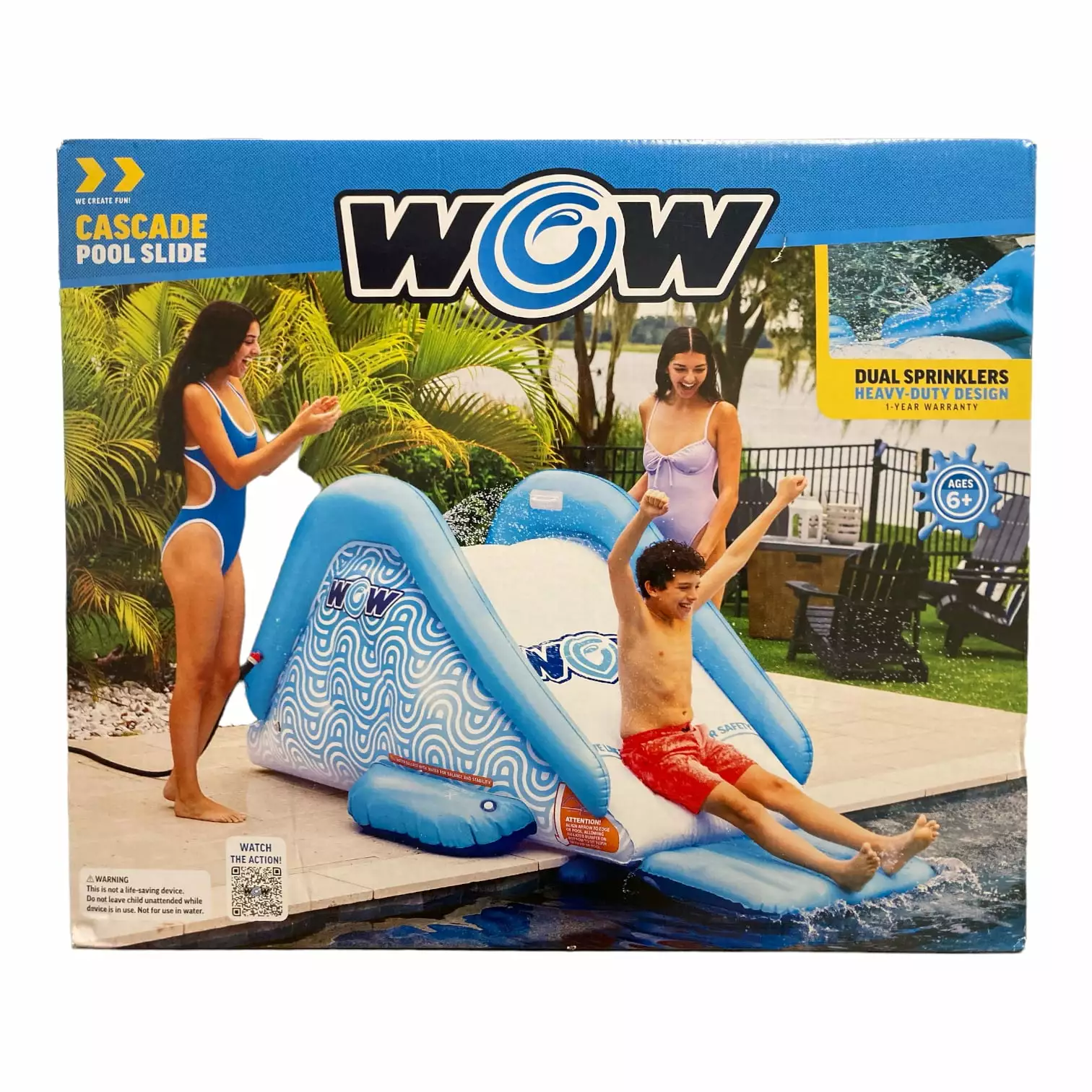WOW Sports Cascade Pool Slide. Inflatable Slide with Dual Sprinklers