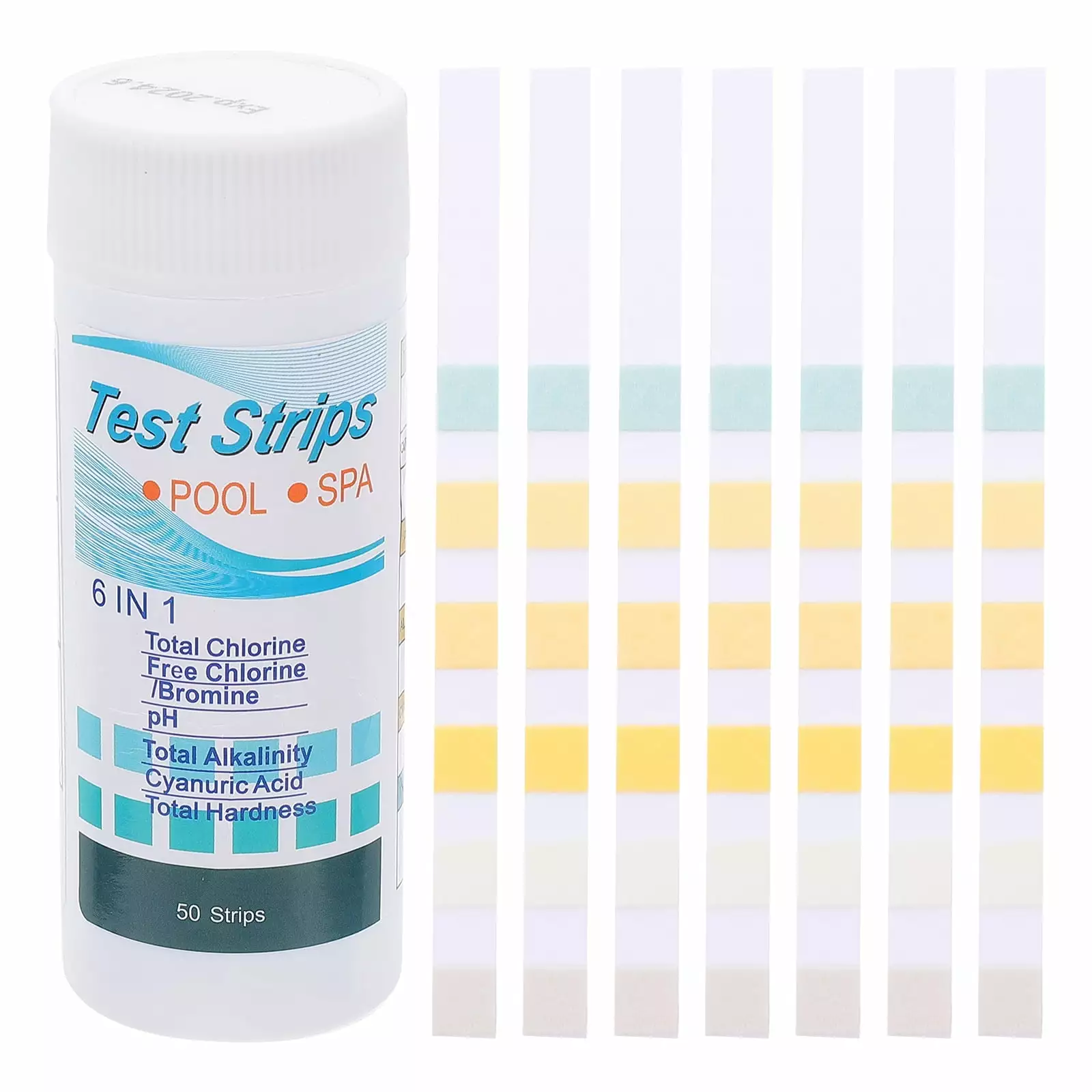 VOAVEKE Pool Supplies And Accessories.6 In 1 Pool And Spa Test Strips Kit 50 Accurate Test Strips For Spa. Swimming Pool And Hot Tubs