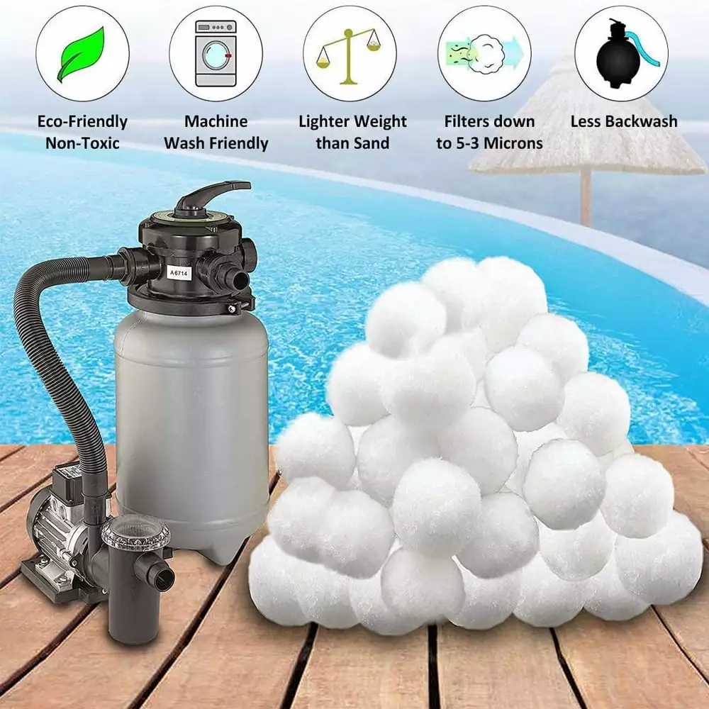 These small. lightweight filter balls are suitable for all standard sand filter systems and require less maintenance than traditional filter media. Filtered to a size of 1.5 microns. they effortlessly absorb all filter residues. leaving your pool crystal clear and safe. Don’t waste another summer worrying about irritation from the residue in the pool. Grab your hand now and swim carefree in the world!