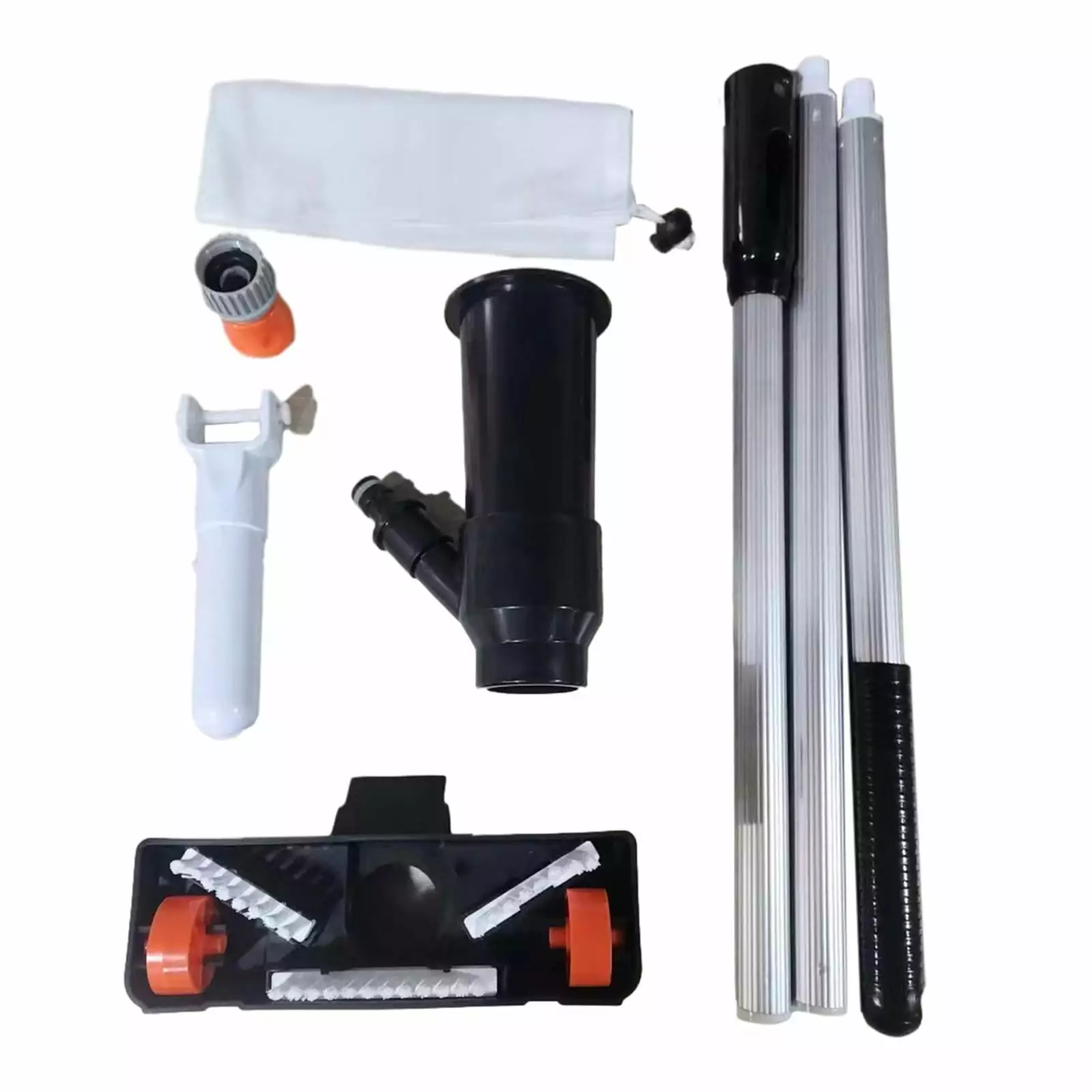 1.6M Portable Swimming Pool Vacuum Cleaner US Connector with 4 Sections Pole.Swimming Pool Vacuum Cleaner with 4 sections thickened aluminum alloy pool poles. total length is 160cm/5.2ft after assembledPortable Pool Vacuum Cleaner. simply powered by the water pressure from a garden hose(Not included). the bottom is equipped with and quickly picking up leaves in the pool is very effectiveSwimming Pool Underwater Cleaner designed with 4 section poles and a cleaning mesh bag. easy to clean and carrySwimming Pool Vacuum Cleaner set includes accessories]1 suction head. 1 mesh bag.1 buckle. and 4 poles handle with a water inletPortable Pool Vacuum for cleaning swimming pools. above ground pools. pools. spas. tub. ponds. and fountains. and more1.6m Portable Swimming Pool Vacuum Cleaner. 5.2ft Pool Vacuum Jet Cleaner Handheld Spa Pond. Pond Fountain Underwater Cleaning for Tub. Above Ground Pools Cleaner With 4 Sections Pole. Underwater Cleaner Suction Head and Mesh Bag.
