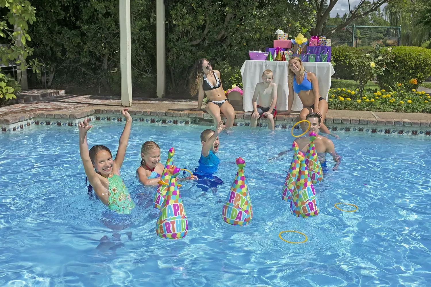 – Edge-smoothness design is great for kids to play in the pool.