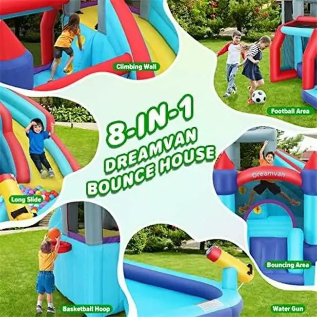 The 10′ Bounce-N-Splash padded water bouncer with slide attachment water park is the perfect family water park. This 10 foot water bouncer includes the bouncer slide attachment. This product has the same high quality reinforced materials that go into all Island Hopper® water trampolines and bouncers. This manageable 10?? size is perfect for kids to bounce on and for adults who are just into lounging. The spring-less. interlaced nylon webbing bouncer design uses tube flex features to give the user a short enjoyable bouncer lift. 4 step easy access ladder makes this a perfect product to turn a pond into a swim area or to throw on the boat and inflate at your favorite anchoring spot.