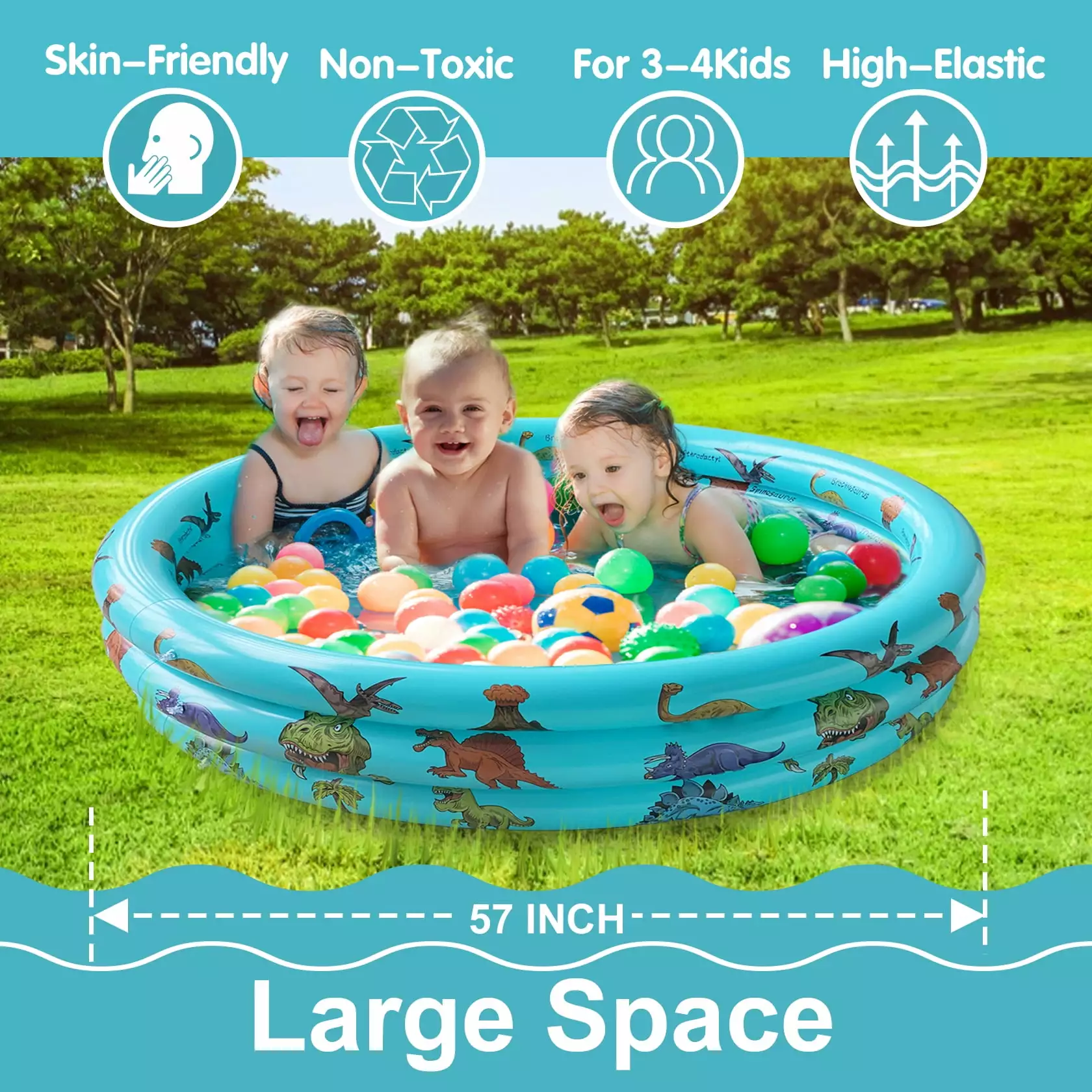 10Leccion Dinosaur Inflatable Kids Pool. Blue Swimming Pool for Toddler. Blow up Ball pit Pool(57*15). Baby Pool. Round