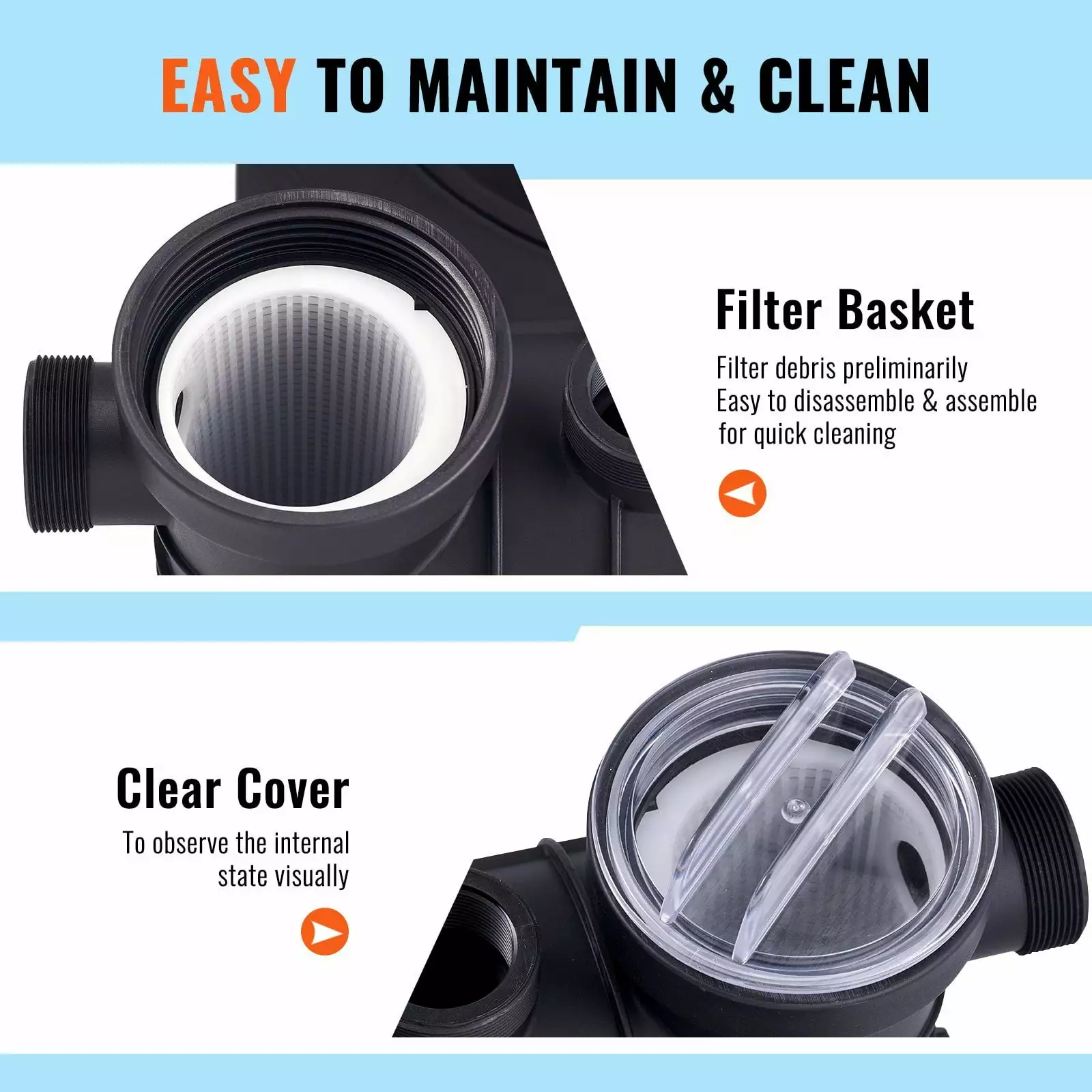 - Multi-Functionality: Equipped with a 6-way multi-port valve. this pump offers versatile modes including filter. rinse. backwash. recirculate. waste. and winter modes. catering to diverse pool maintenance needs with ease.