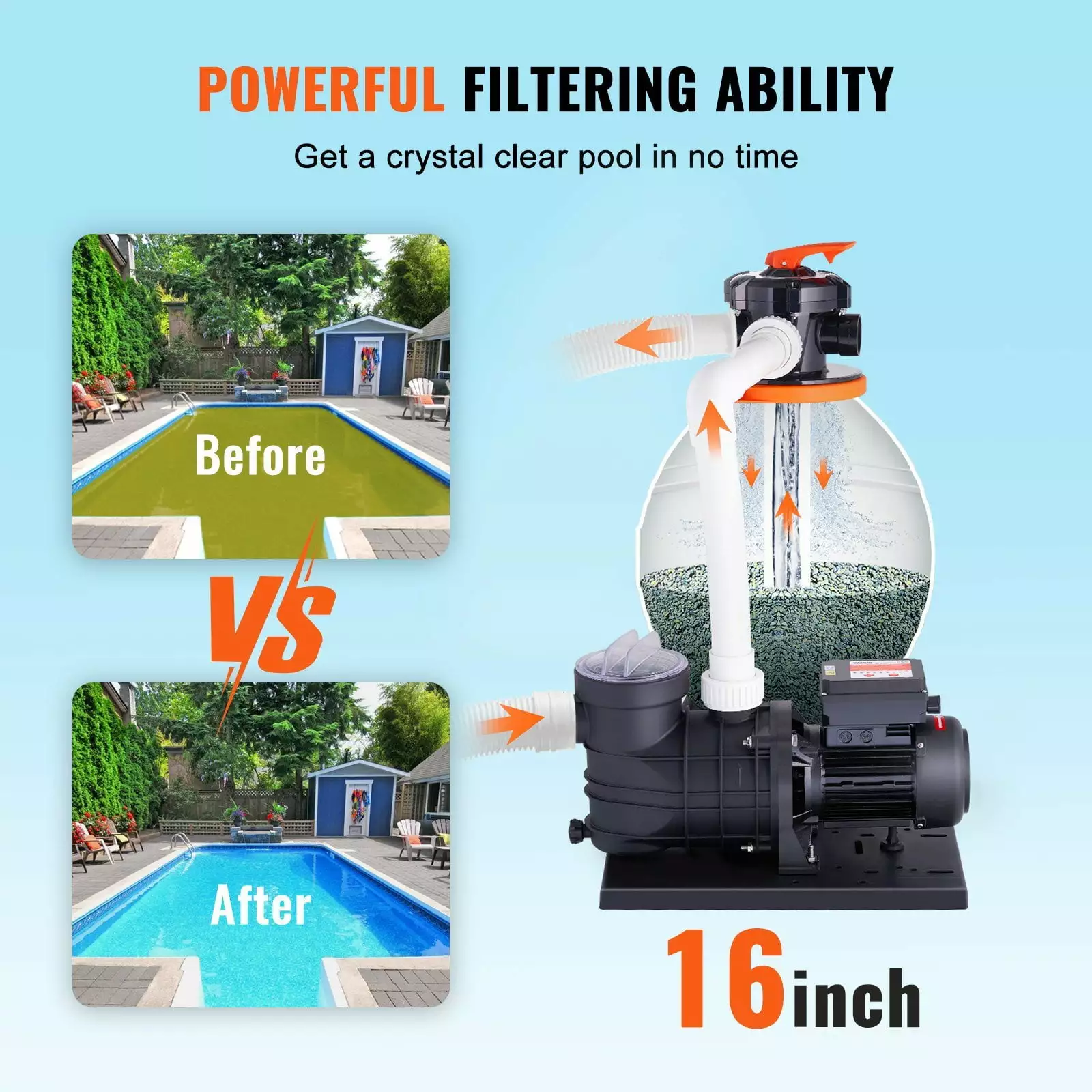Versatile and reliable. the VEVOR 16-inch Sand Filter Pump is suitable for a variety of applications including residential backyard pools. community pools. and small commercial water parks. making it an essential choice for maintaining clean and safe pool water.
