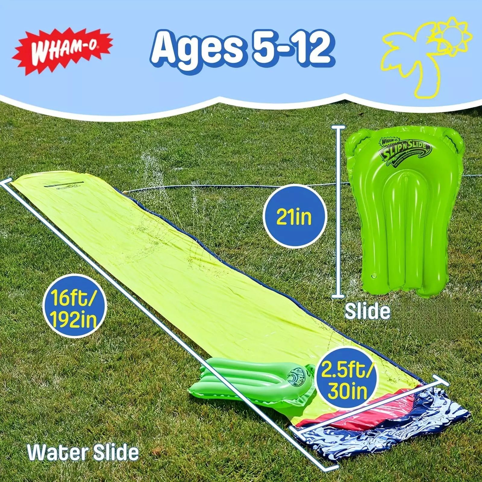 1pc 16ft Water Slide With Inflatable Slide Board. For Kids Outdoor Backyard Fun