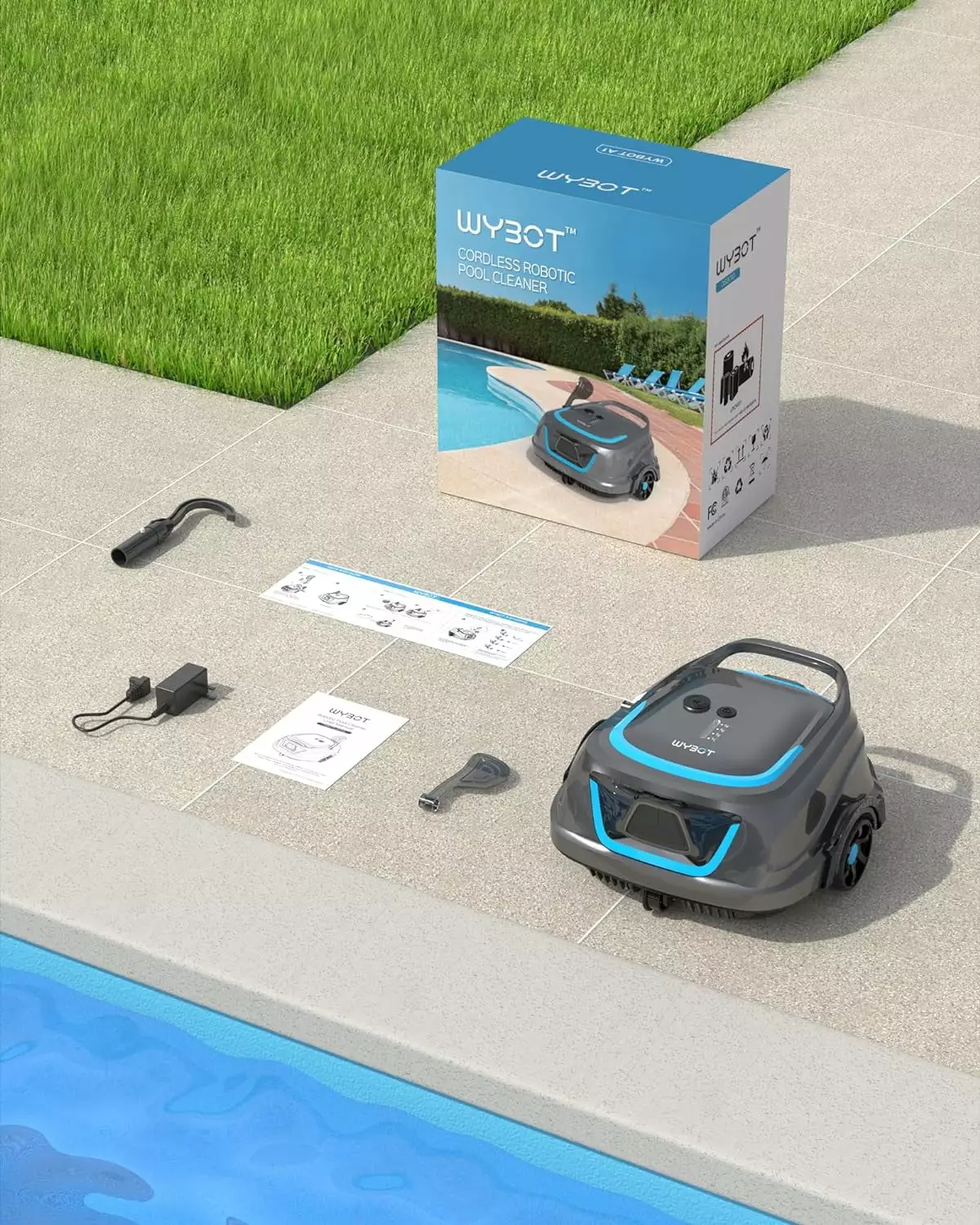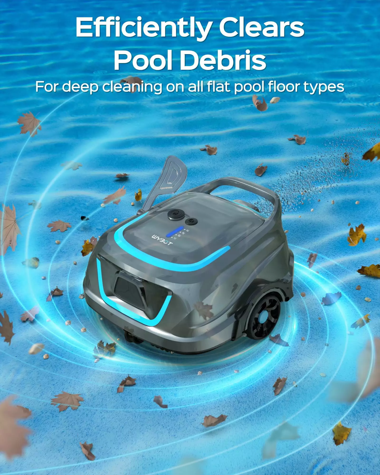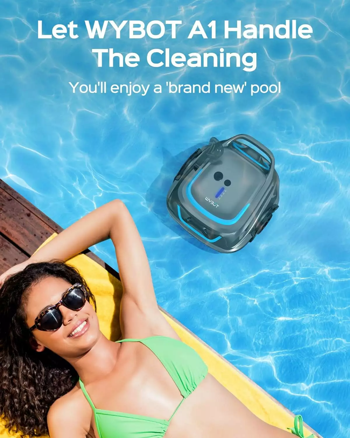 WYBOT A1 Cordless Robotic Pool Cleaner with App-Control Powerful Cordless Pool Cleaning. It’s easy to use with scheduled cleaning options and a user-friendly interface. Smart path planning helps it move smoothly. and you can clean for up to 2 hours on a quick 2.5-hour charge. This cordless pool cleaner features a strong dual-motor system for top suction and efficiency. The dual-layer filtration system traps all kinds of debris. ensuring a clean pool every time. Durable and safe for all pools with its IPX8 waterproof rating. Effortlessly clean pools up to 861 sq ft. WYBOT A1Cordless Pool Vacuum keeps your pool spotless with minimal effort.