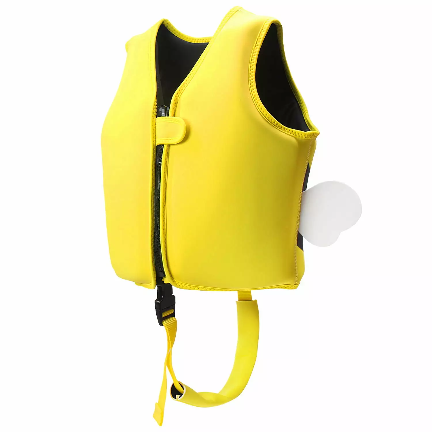 STRIKING COLOUR: This child’s lifejacket comes in a striking yellow colour for easy identification by parents or lifeguards.