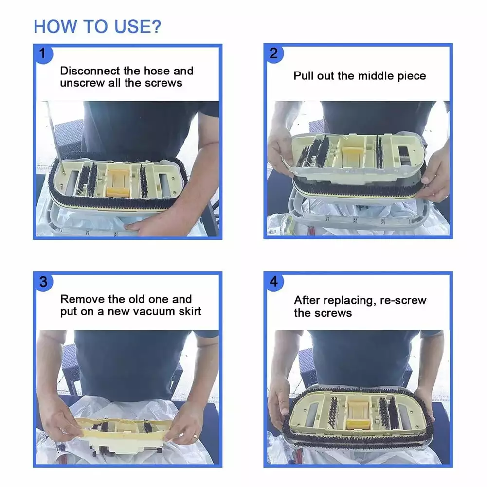 - The skirt was made to help aid in the cleaning process and it does this by helping the brush ring kit with support while the brush agitates back and forth to clean the algae and dirt from the surface. Also. it acts as a protective cover for the lower body so that way it doesn’t take on any added wear or potential damage. This vacuum skirt is tan in color and is designed to wrap around the outside of the lower body and attach to the tabs that are built around the body as well. The part is also rubber which means it can and will deteriorate over the length of time and use of the cleaner. so when installing a new a great tip is you want to make sure the outside marking on the skirt is facing the outside of the lower body where it is visible to the eye. if not then the cleaner will not operate properly