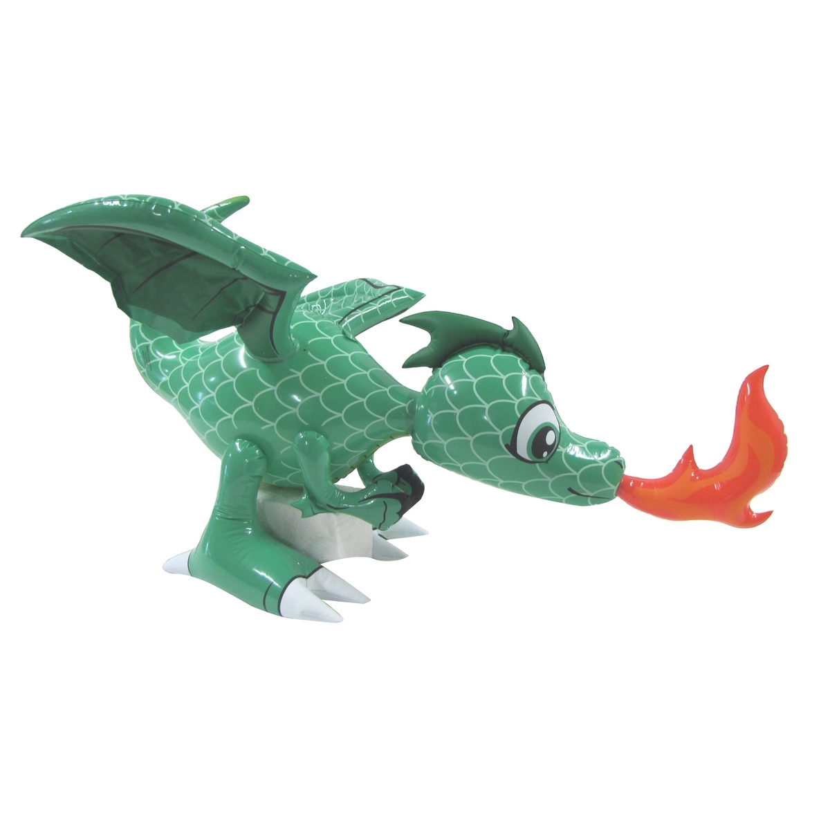 Have a flaming hot summer with this inflatable green dragon swimming pool float. Featuring a green complexion. wings. visible scales. tail. a cute and friendly face. and fire coming out his mouth. this 30" dragon pool float looks like a baby dragon trying to breathe fire for the first time. A great addition to your other pool floaties. this beach toy is sure to be a hit at your next pool party and will have guests wanting one of their own. Blow up this fun vinyl fire-breathing dragon and toss it in the water with the kids. hand it out as party favors. or use it as a decoration for your dragon or Game of Thrones-themed party. A great pool party gift or gift for friends and family. this toy floatie is certain to get everyone talking. Pool toy measures approximately 27" long. 18 1/4" wide. 16 1/2" tall when inflated. and ships brand new with our 100% customer satisfaction guarantee. PLEASE NOTE: This is not a lifesaving device.