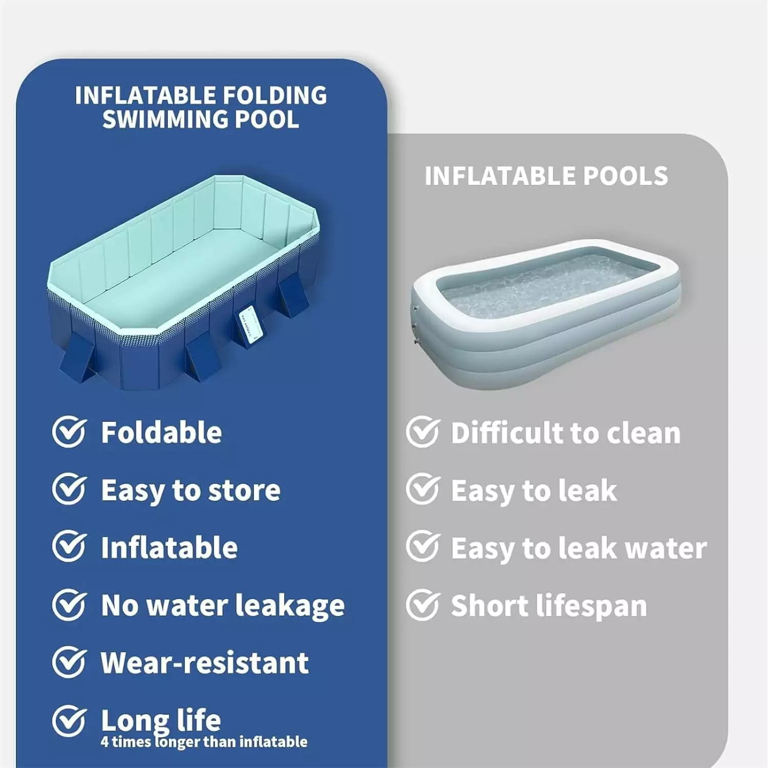 Say goodbye to punctures and leaks that come with inflatable pools – our hard plastic pool ensures long-lasting durability and enjoyment. With its foldable design. this pool can be easily stored and transported. making it the perfect companion for trips to the beach or family vacations.