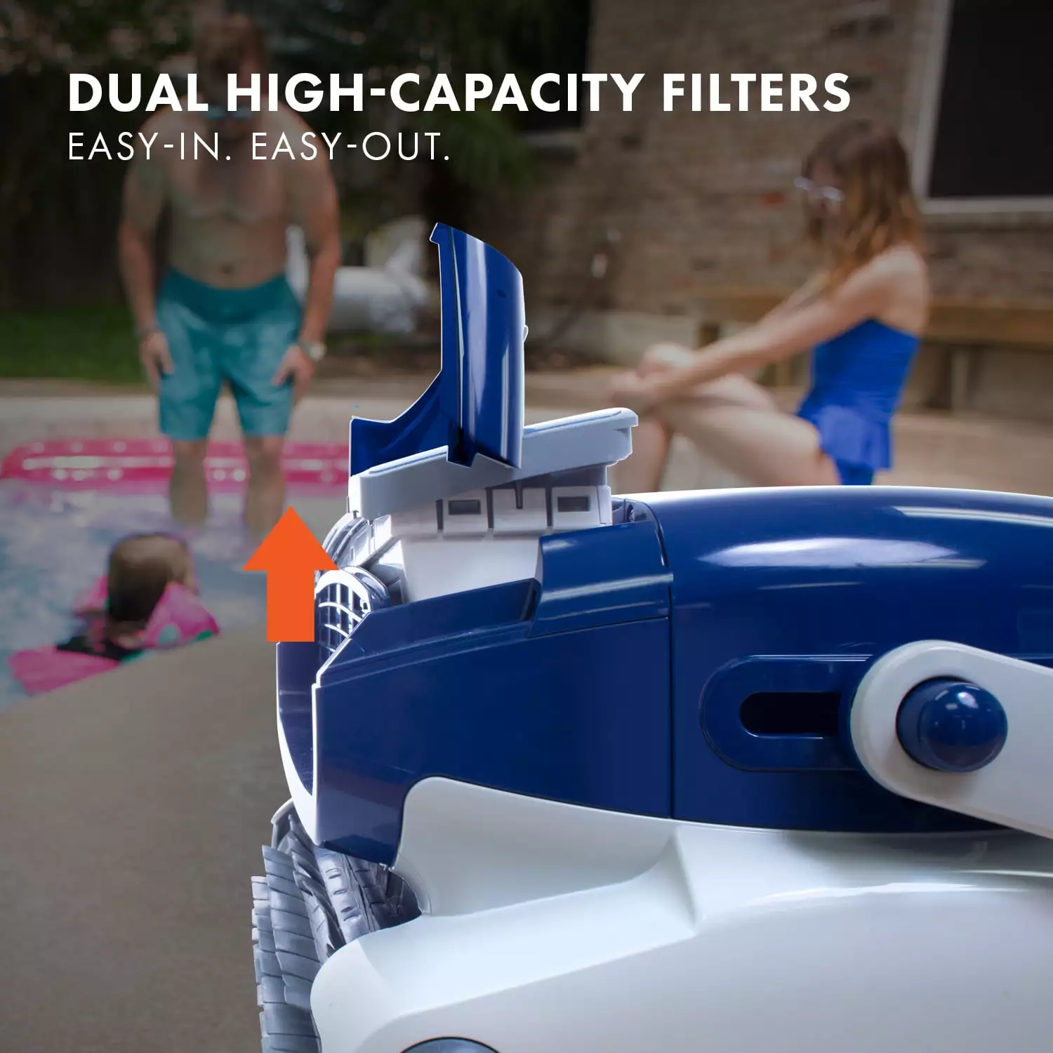 Aquabot Elite Pro Robotic Pool Cleaner with Bluetooth. Massive Top-Load Cartridge Filters. Dual Brushes. and App