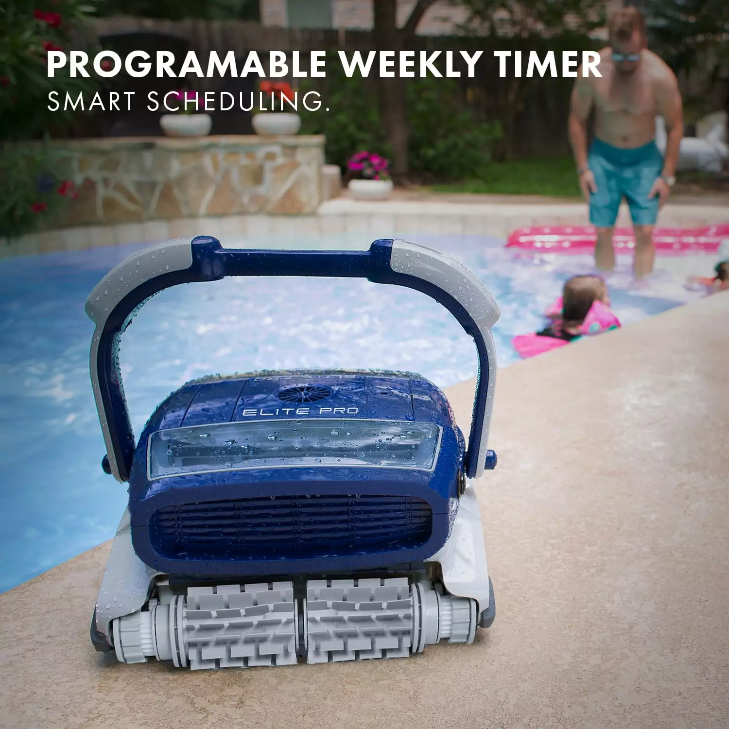 - Just say when. Set Elite Pro’s weekly scheduler to automatically clean for you- daily. 2x per week. or 3x per week. Connect your Elite Pro to your smartphone using Bluetooth to spot clean when needed