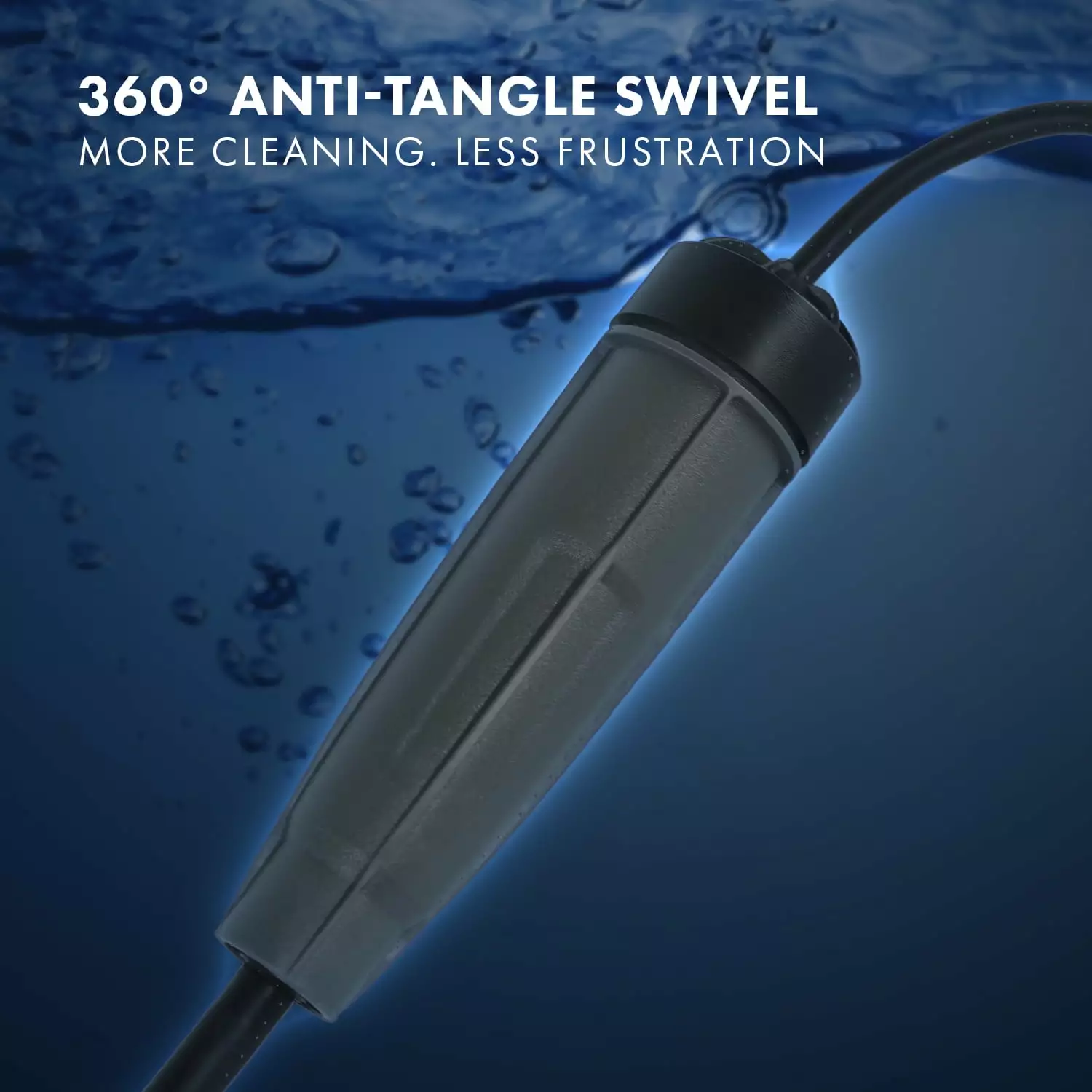 - 360 Degree Anti-Tangle Swivel and Smart Navigation Eliminates Frustrating Cable Tangles and gives your pool a deeper clean. Advanced navigation and scanning software ensures your pool is cleaned using the most efficient route without letting obstacles get in the way