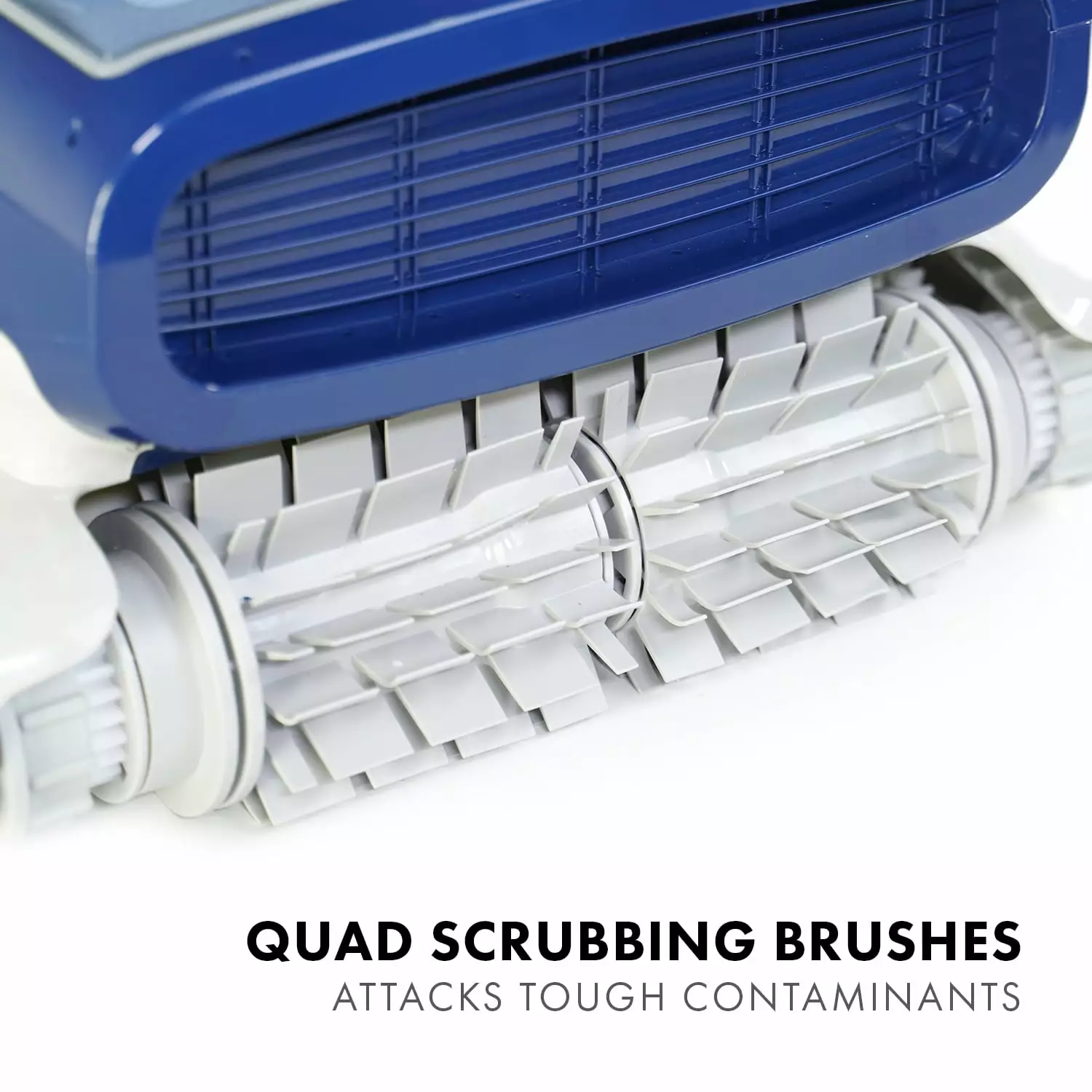 - Powerful. dual scrubbing brushes thoroughly and efficiently attacks tough contaminants removing algae and bacteria from floor. walls and waterline for a deep clean in 2.5 hours