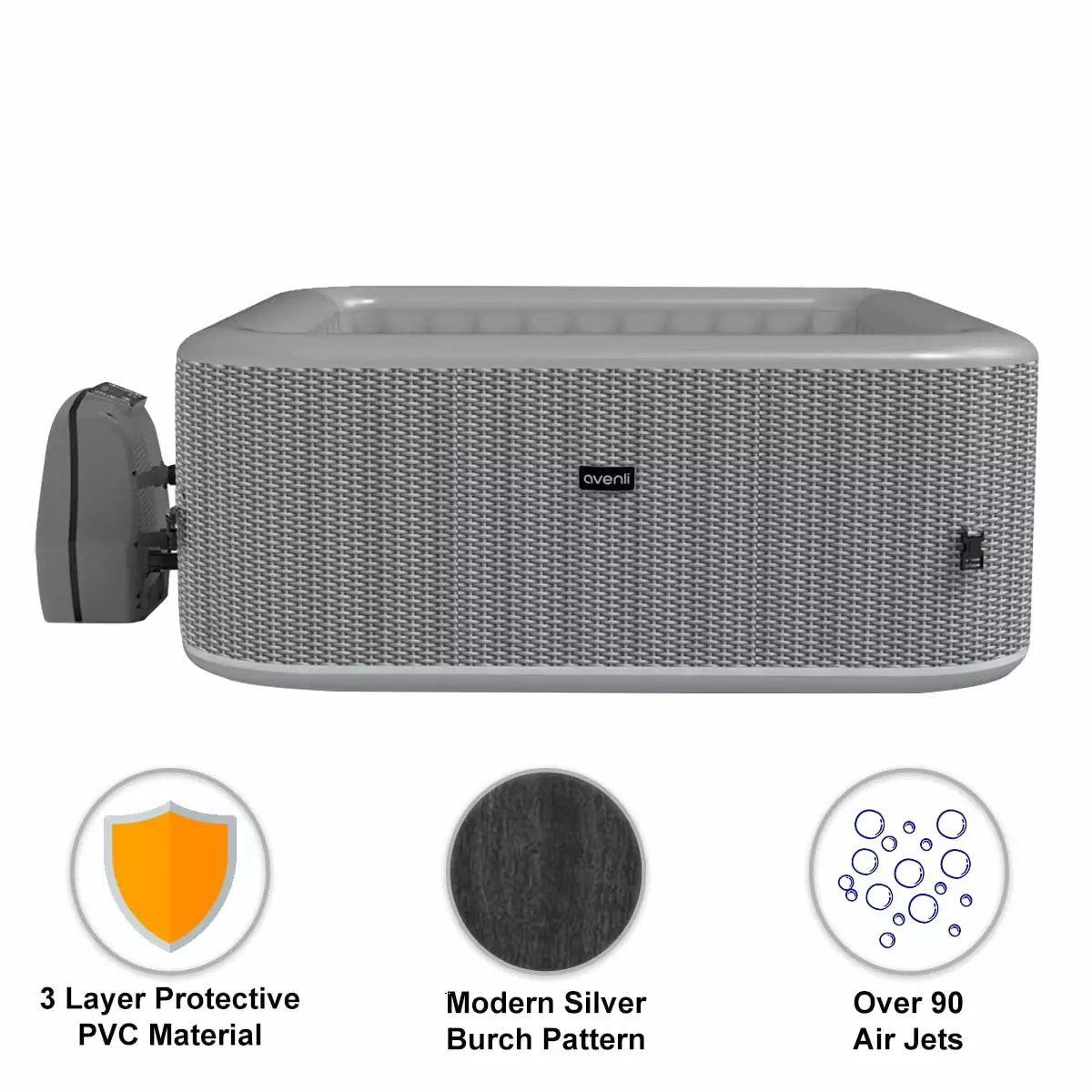 Avenli 4-Person Inflatable Square Spa. Silver Birch. 58 x 58 x 25