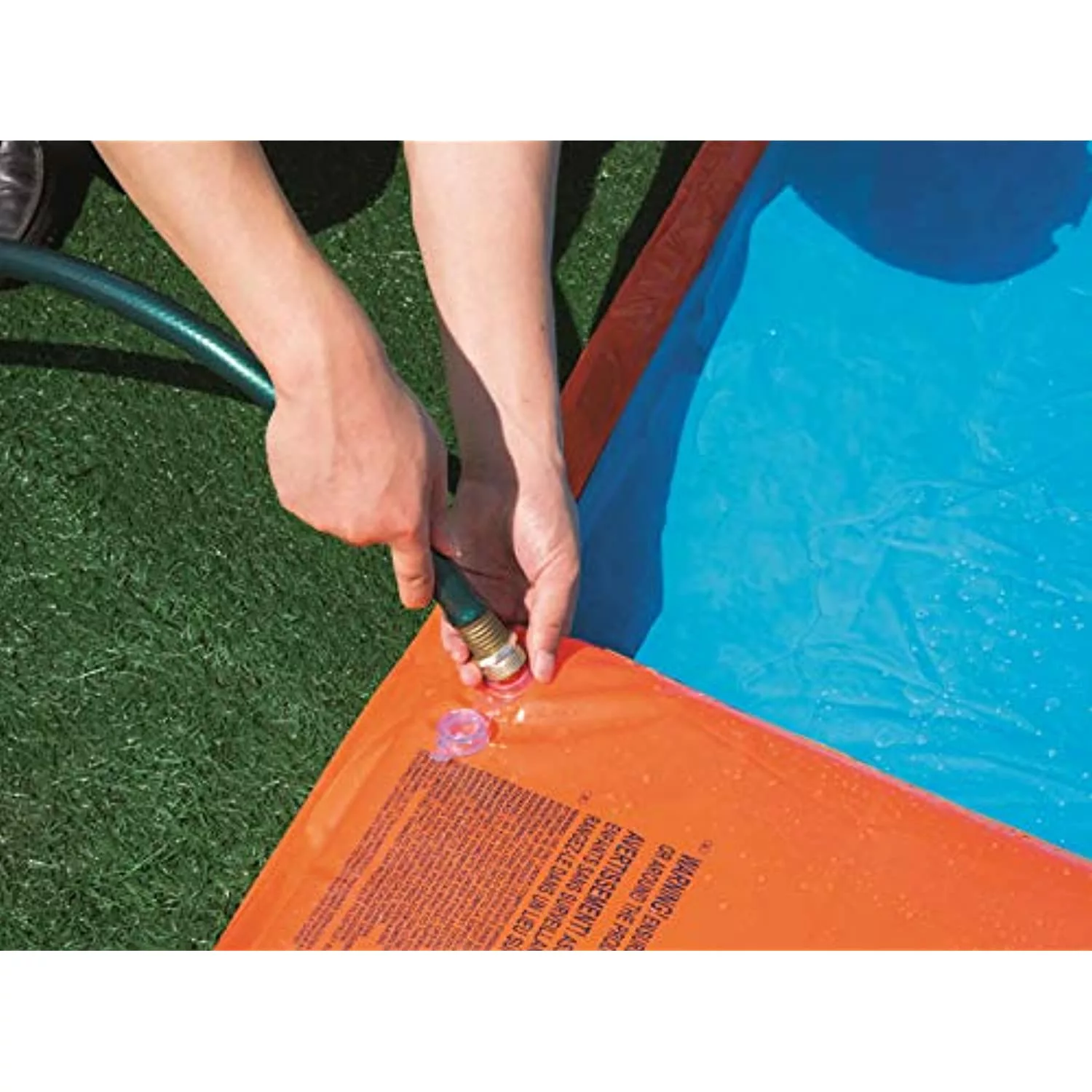 - Easy to connect to your garden hose. With a small water pool at the end and a water start ramp. Made from durable 0.27/0.20mm vinyl.