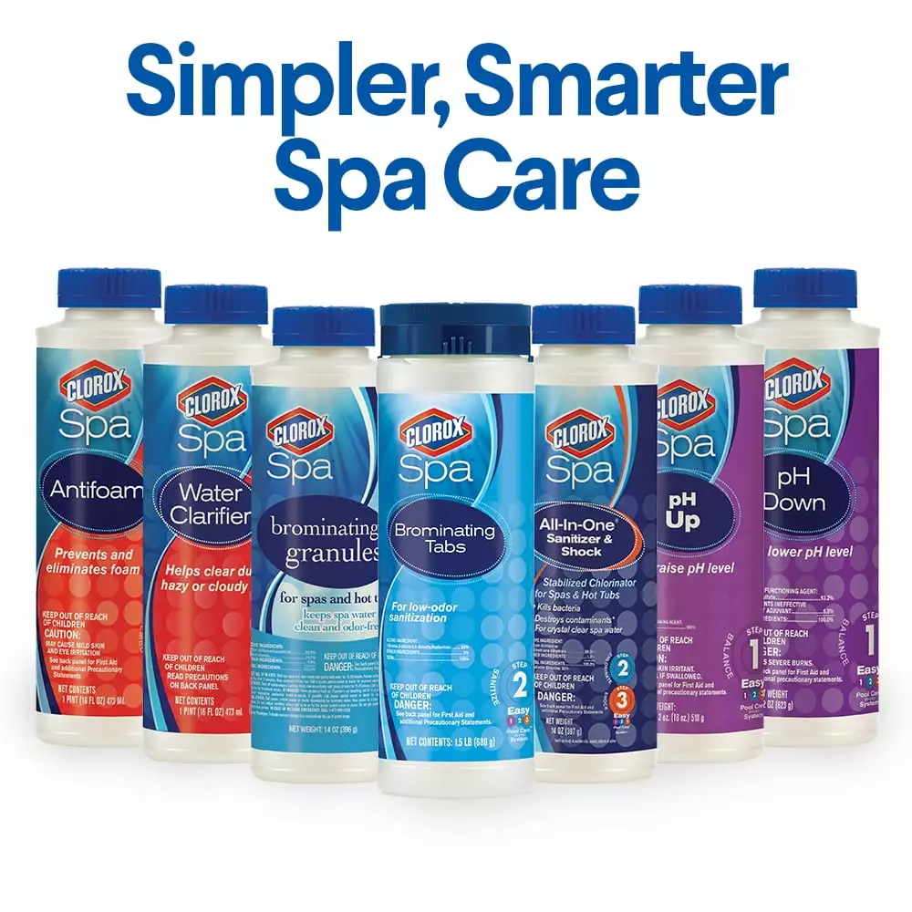 Clorox Spa Water Clarifier helps make your cloudy spa crystal clear. It’s a concentrated spa water clarifier that creates crystal clear pool water. For best results. use weekly with other Clorox Spa products. such as All in One Sanitizer and Shock and Clorox Spa pH Down. Use the Clorox Pool&Spa Multi-Use Smart Strips to test your spa’s chemical levels including pH and bromine (shown as chlorine on the test strip.) Make a schedule to perform routine maintenance once or twice a week. Applying this hot tub water clarifier regularly is the best way to keep it clear all the time.