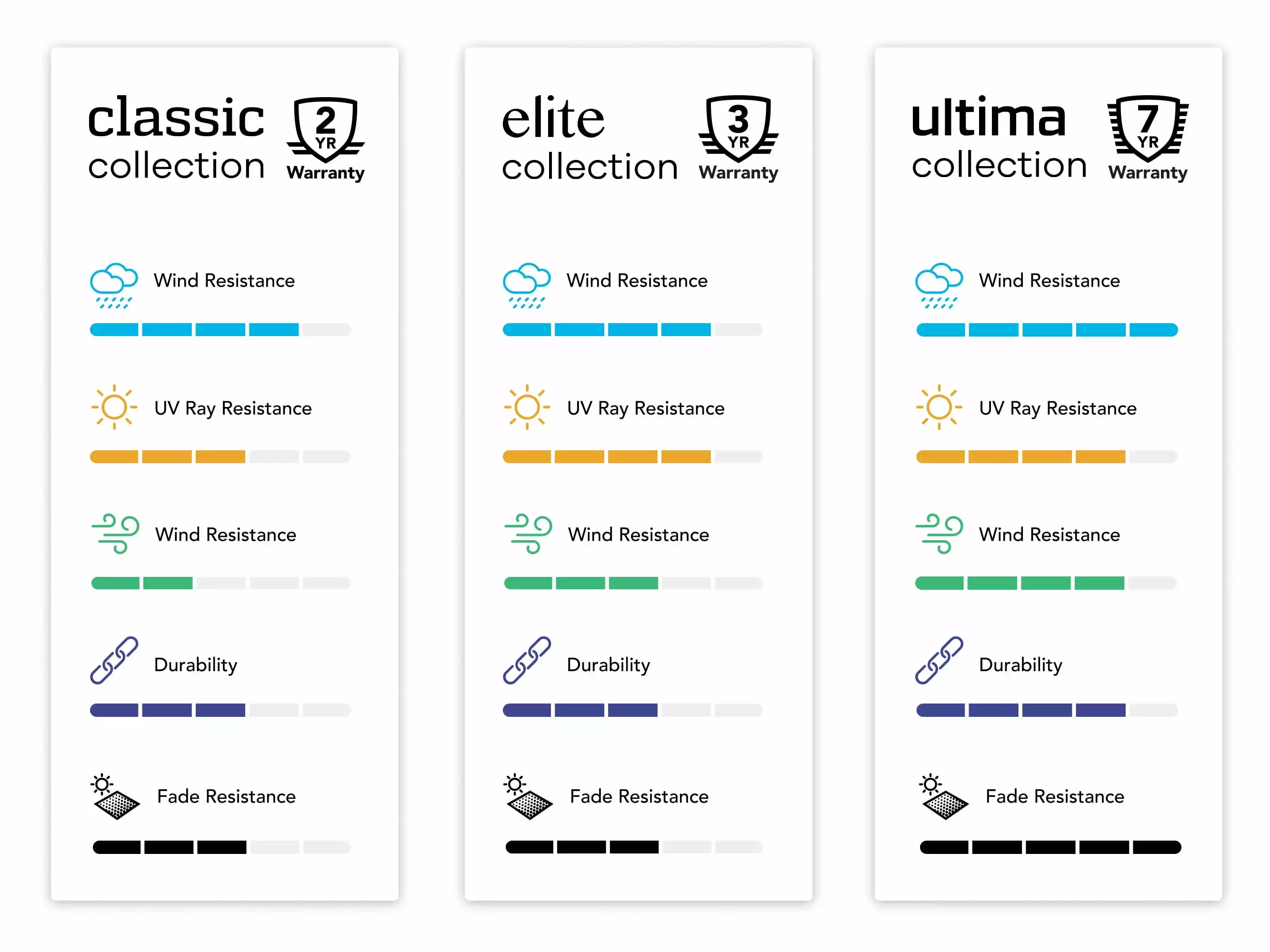 Classic Green Vinyl, Elite Khaki Polyester, Ultima Ripstop Grey Fade Resistant Polyester, Ultima Ripstop Tan Fade Resistant Polyester |