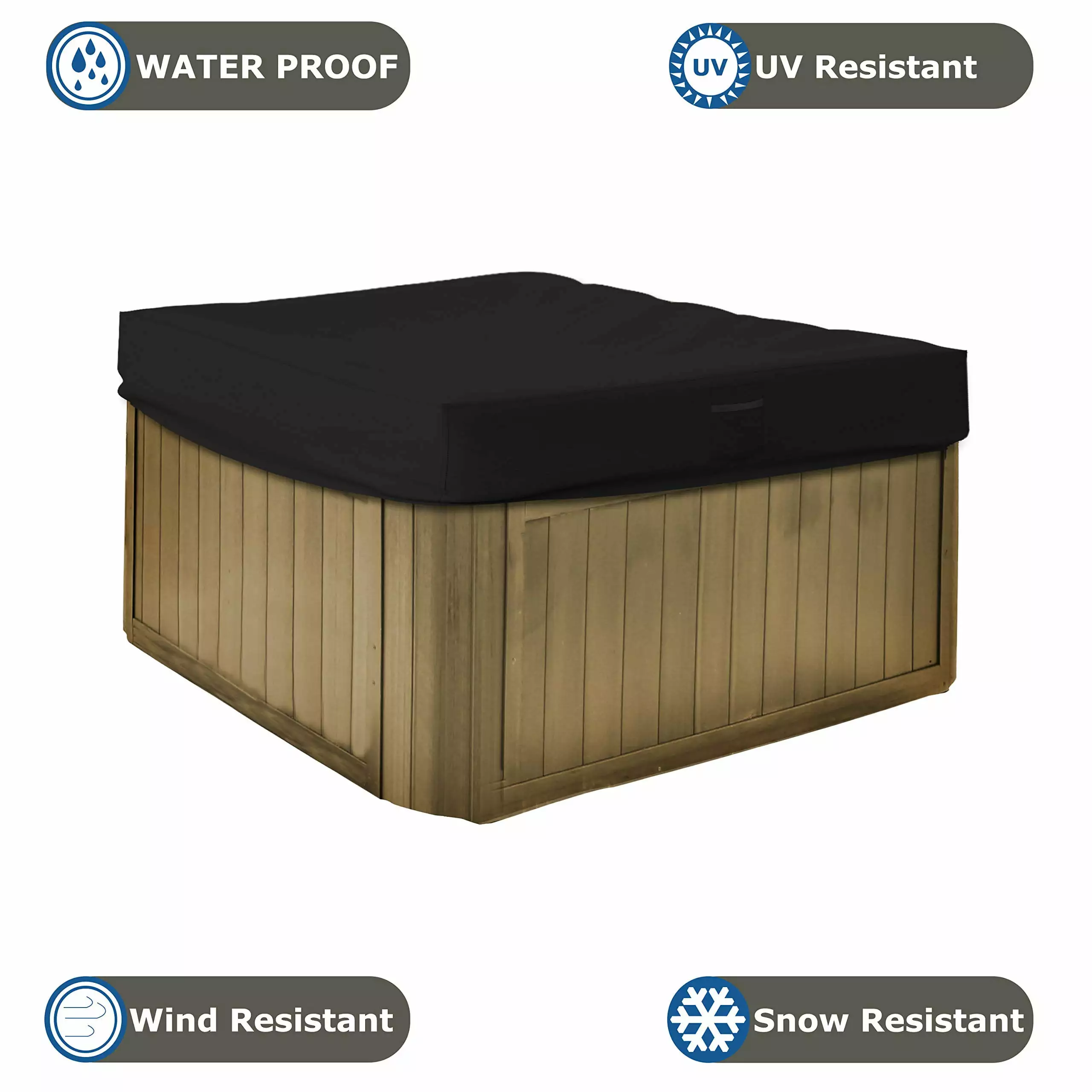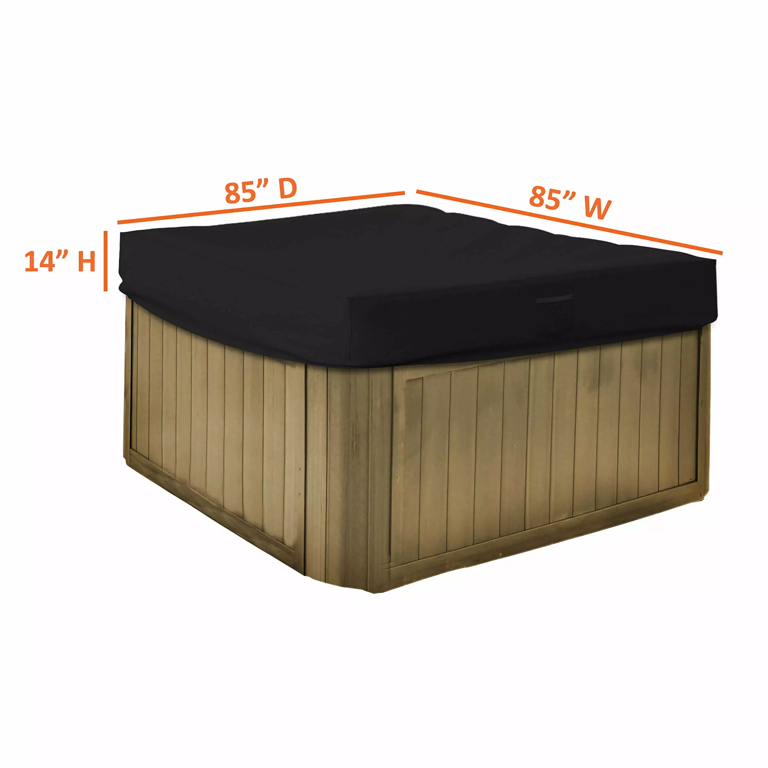 COVERS&ALL Hot Tub Cover/Spa Cover 18 Oz Waterproof – 100% Weather Resistant Outdoor Square Spa Cover with Elastic for Snug Fit (14 H x 85 W x 85 D. Black)