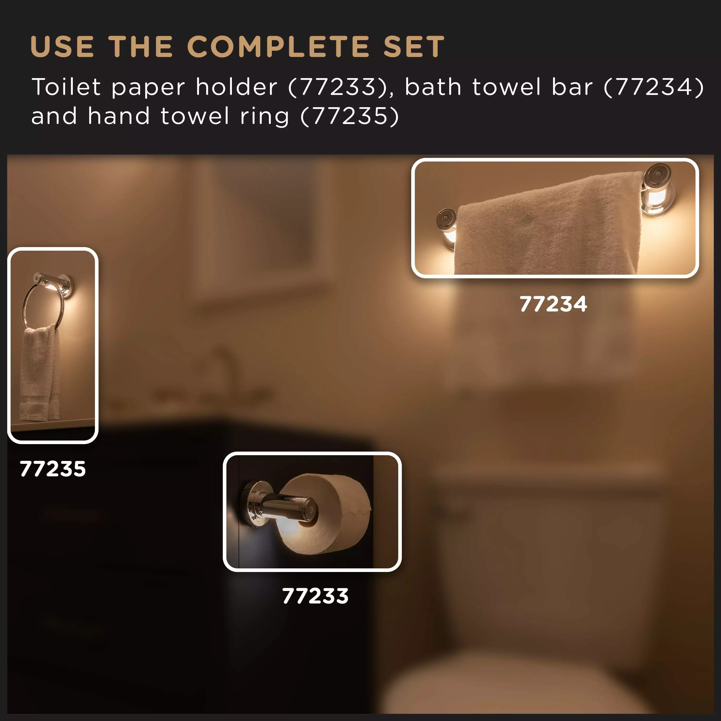 - Bathroom D??cor Lighting ?C The Enbrighten bathroom lighting set is designed for function and style ?? toilet paper holders (77233). bath towel bars (77234). hand towel rings (77235)