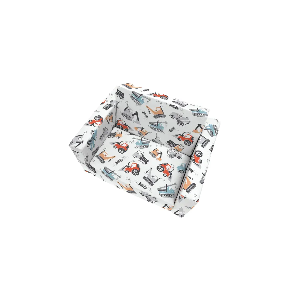 CUTE DESIGN: Truck Excavator Car on the Kids Couch will create a World that kids can enjoy. Having snacks. Watching TV. Readings or just lay down to Rest. The Side Pockets can store Books and Toys. keep their precious within reach. It’s also light enough for the kids to fold by themselves. any time any where.