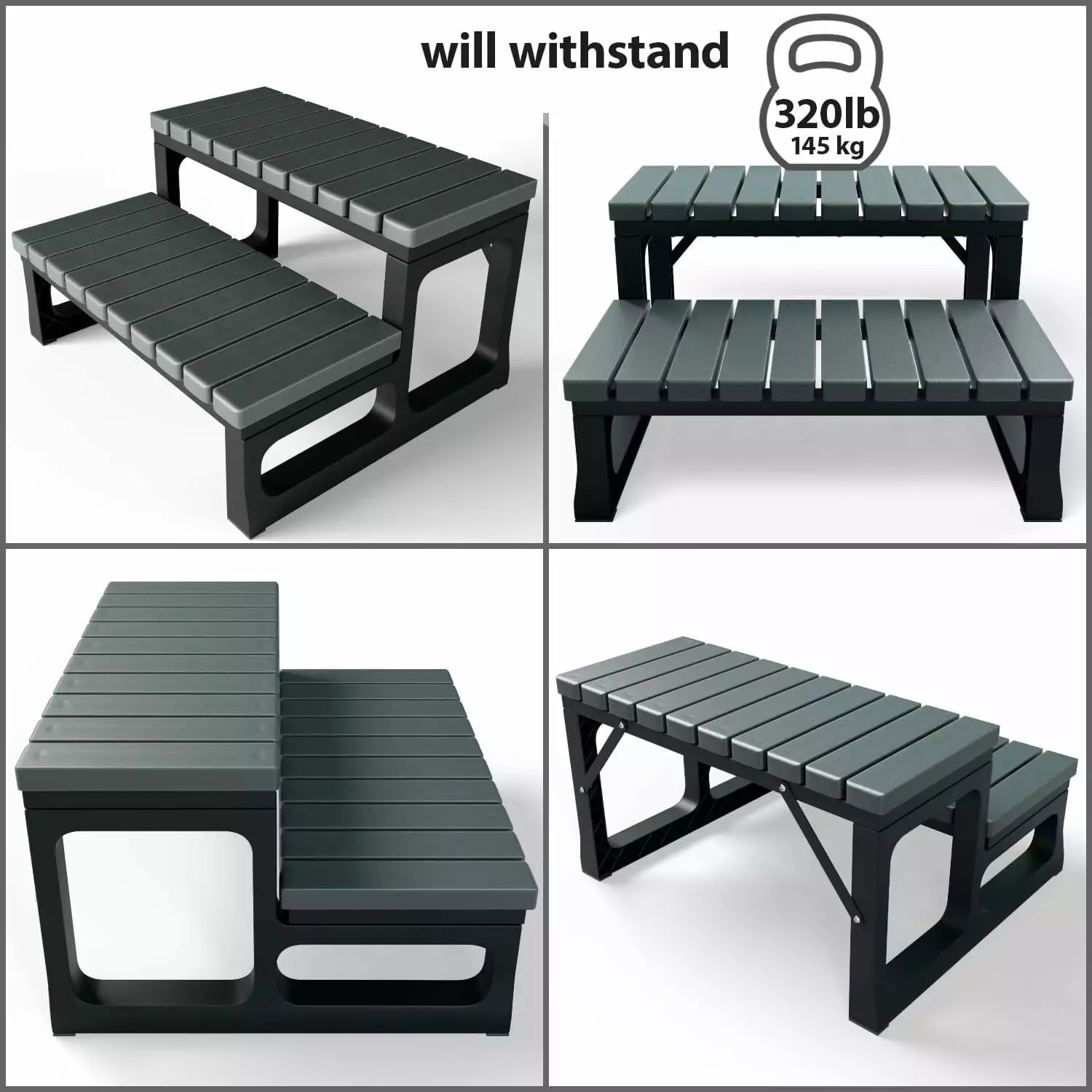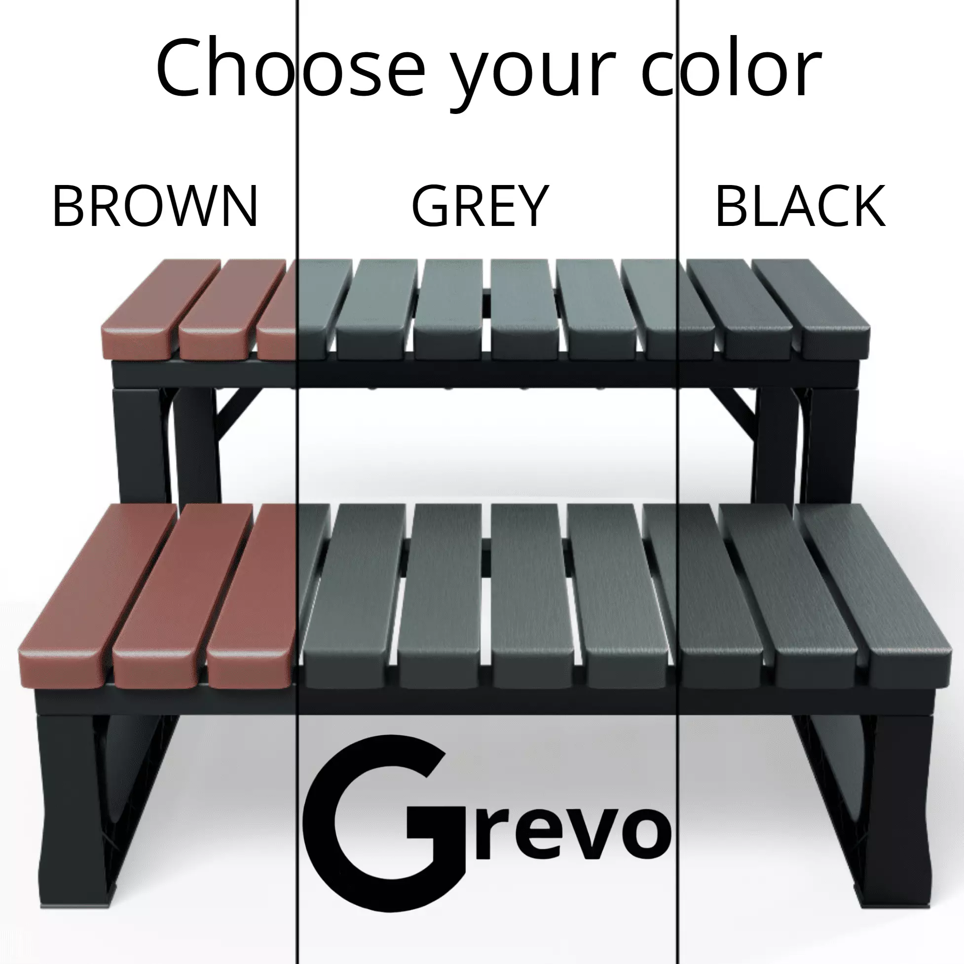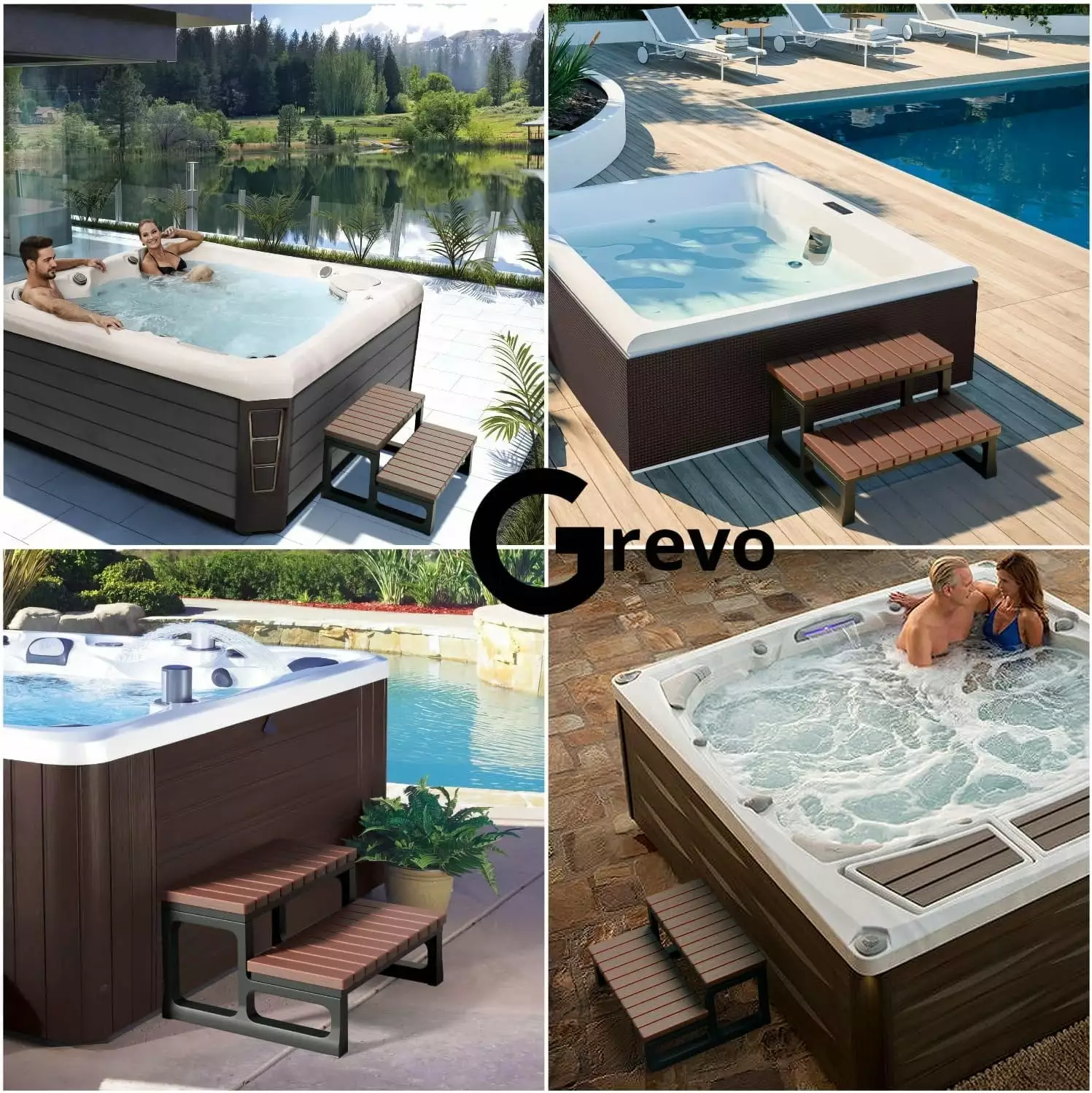 - Select from three color choices for your spa steps for outdoors: grey. black. or brown (espresso). Each color will seamlessly enhance your interior. adding a touch of elegance to your relaxation moments with loved ones.