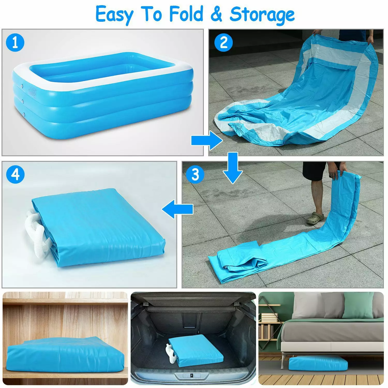 Inflatable Pool. Rectangular Swimming for Kids. Adult. Family. Blow-Up Toddlers Pool for Outdoor Garden Backyard. 120 x 72 x 24 in