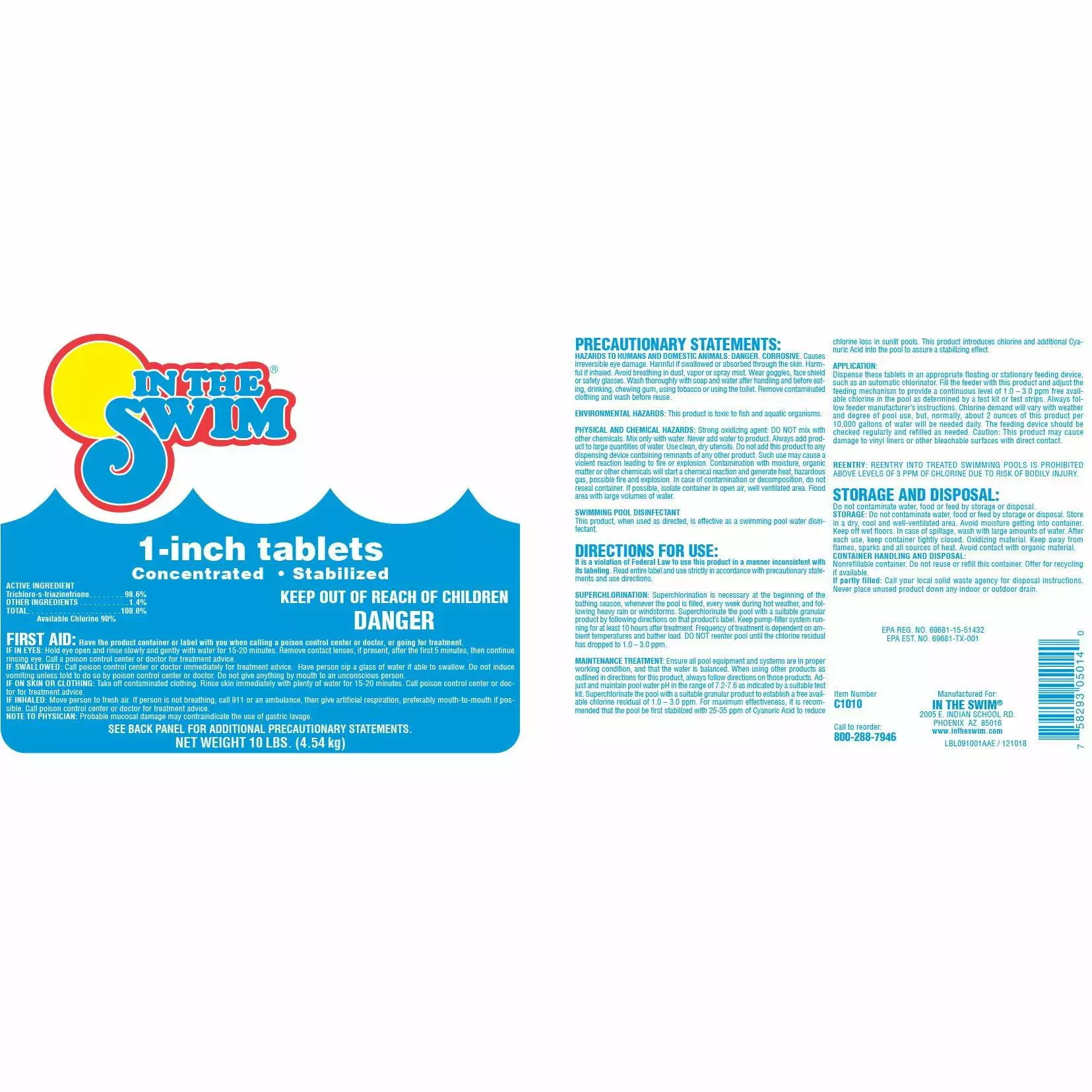 Maintaining the clarity of pool water is an important responsibility of any pool owner. When it comes to our swimming water. everybody wants to see crystal clear and inviting water which is why it is so important to use pool chlorine tablets. Swimming pool chlorine tablets kill bacteria. prevent the growth of algae. and help to maintain a safe swimming pH in your pool water. 1 inch chlorine tablets dissolve faster than 3" tablets. due to increased surface area. making them a better choice for larger pools over 50.000 gallons. When used in combination with a floating feeder or automatic chlorinator. 1" chlorine tablets dissolve at a faster rate and keep your water free from bacteria and algae so you can always enjoy a refreshing swim. When shopping for swimming pool chlorine. 1 inch chlorine tablets are recommended for spas and small pools because the dosage is more controllable. and also for very large pools. because they dissolve a bit faster than 3" tablets. to maintain chlorine levels during peak demand periods. Still. each pool owner should carefully consider the size of their pool and your particular chlorine demand. to determine how much chlorine for pools you will need. In The Swim 1-inch chlorine tablets are best dispensed in a floater or chlorinator. as placing them in the skimmer can cause corrosion over time. Dispensers and floating feeders ensure that your 1 inch chlorine tablets dissolve slowly and consistently. Regardless of how you administer the chlorine for swimming pools. it is an absolute necessity to treat your pool with chlorine and In The Swim 1 inch chlorine tablets are one of the safest. most effective. and most consistent method for chlorinating your pool water.