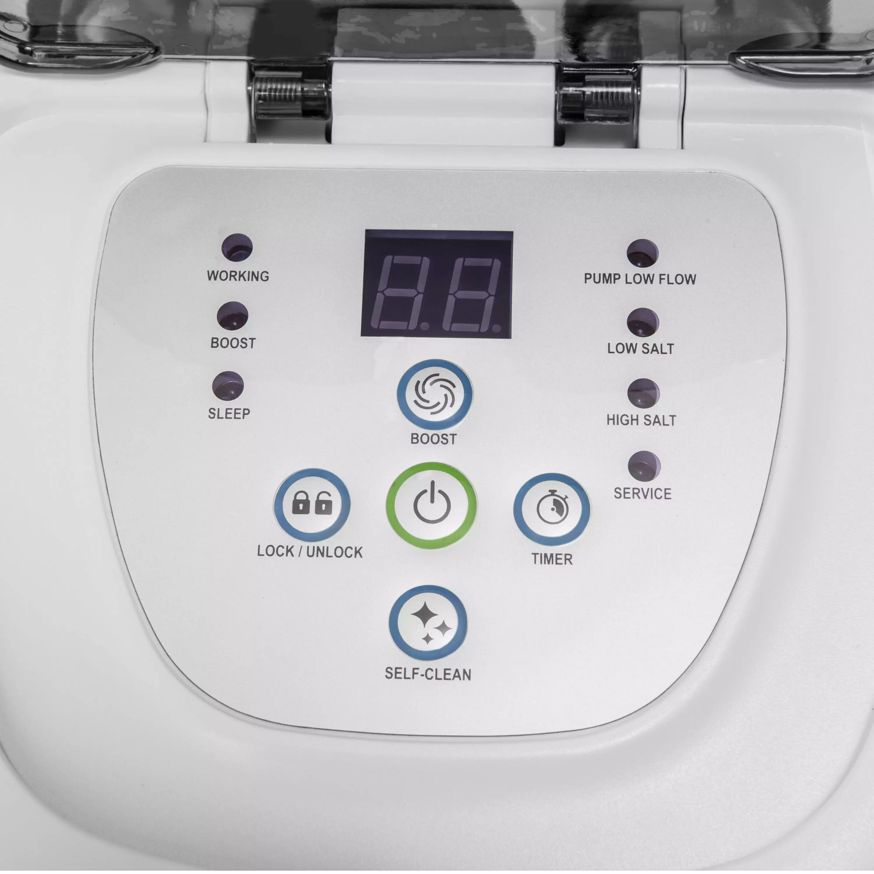 The Krystal Clear Ozone & Saltwater System features a re-designed control panel with a new display and easy access buttons. including an added power button for convenience. It has 3 self-clean modes available and 6/10/14-hr cycles. The 110-120V with GFCI systems requires a filter pump with a flow rate between 700-3.000 gph. It has a chlorine output of 5 g/hr. The maximum water capacity is 7.000 gallons.
