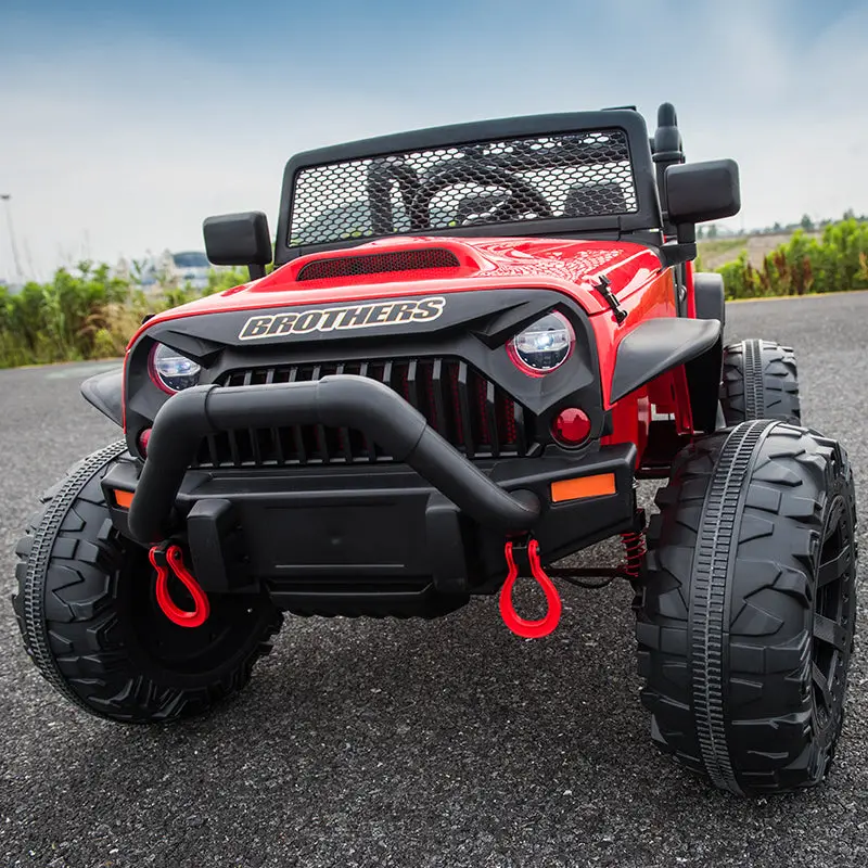 Jeep WHITE Specification: FUNCTIONS Electron assisted steering wheelForward and backwardHigh and low speedFront and back lightFour piece searchlightUSB/bluetooth/MP3/music/ volume adjustment/power display/one button start/light control button,2.4G R/c with three speedFour wheel shock absorberMetallic adjustable pull r