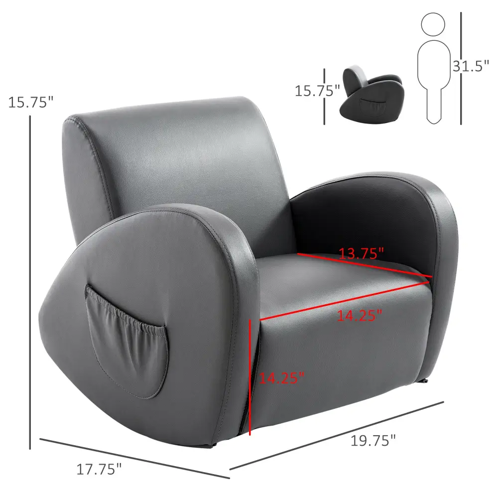 Kids Sofa Rocking Chair with Side Pocket, Pu Leather Toddler Armchair for Children Grey