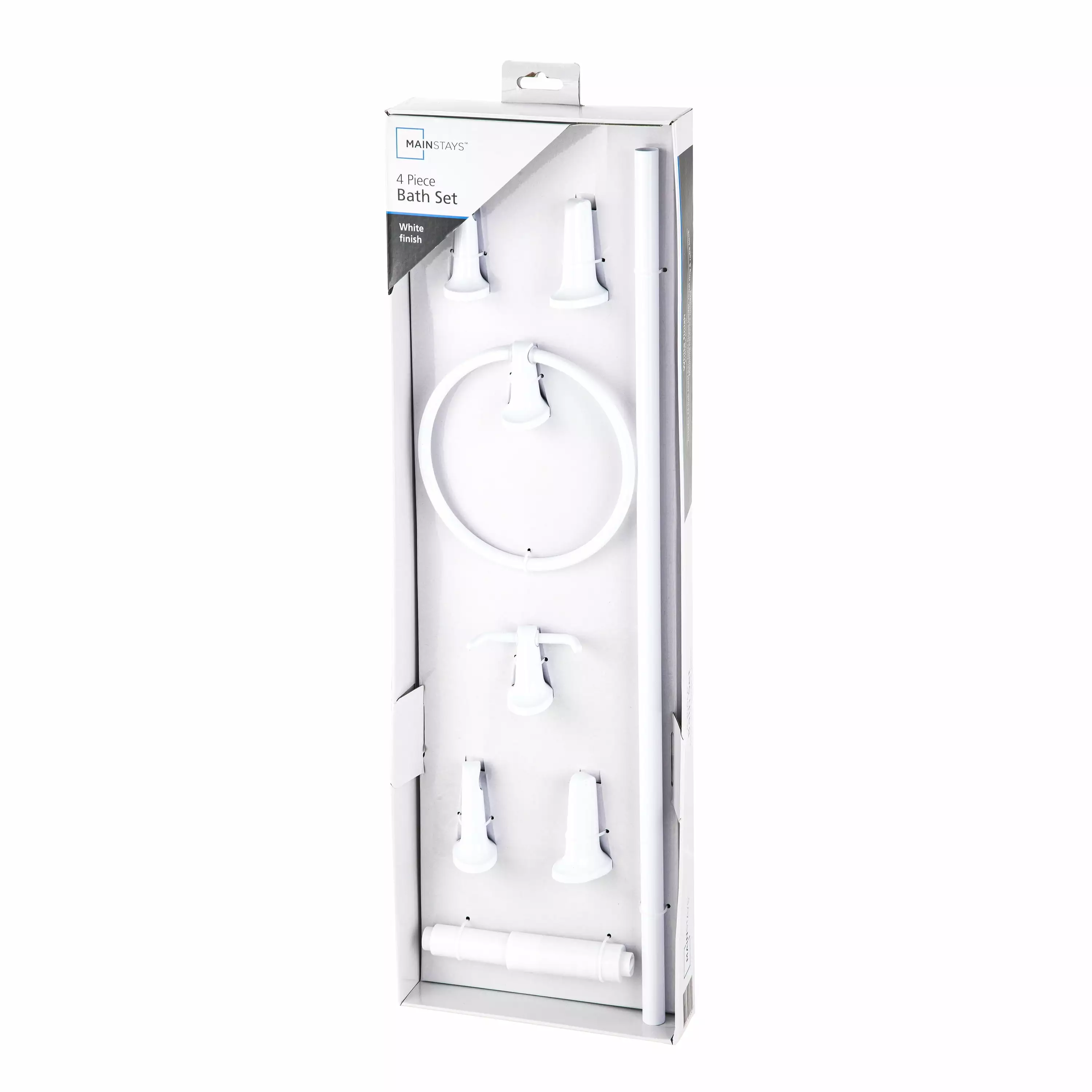 - The Mainstays White 4PC Bath Hardware Set in the Oval style is a perfect addition to any Residential bathroom.