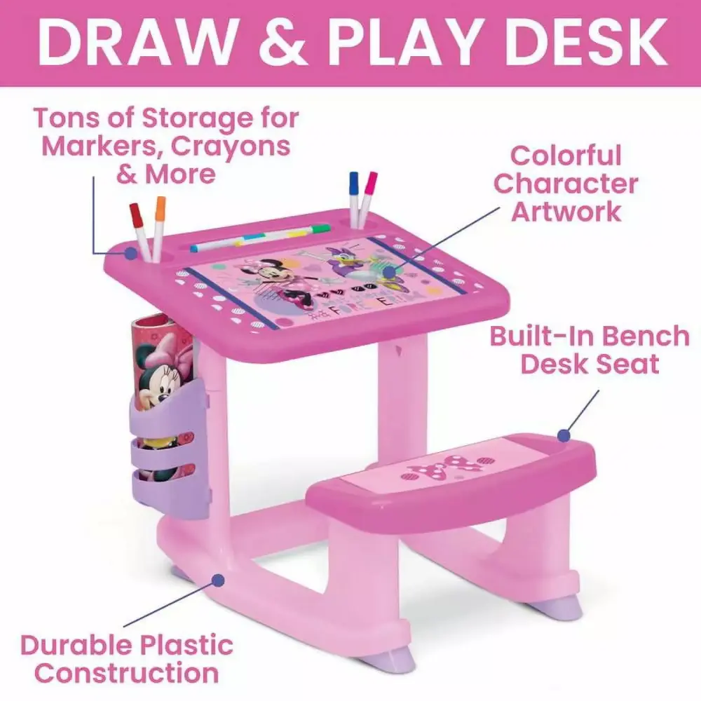 Minnie Mouse 3-Piece Art & Play Toddler Room-in-a-Box with Desk, Storage & Toy Box in Pink