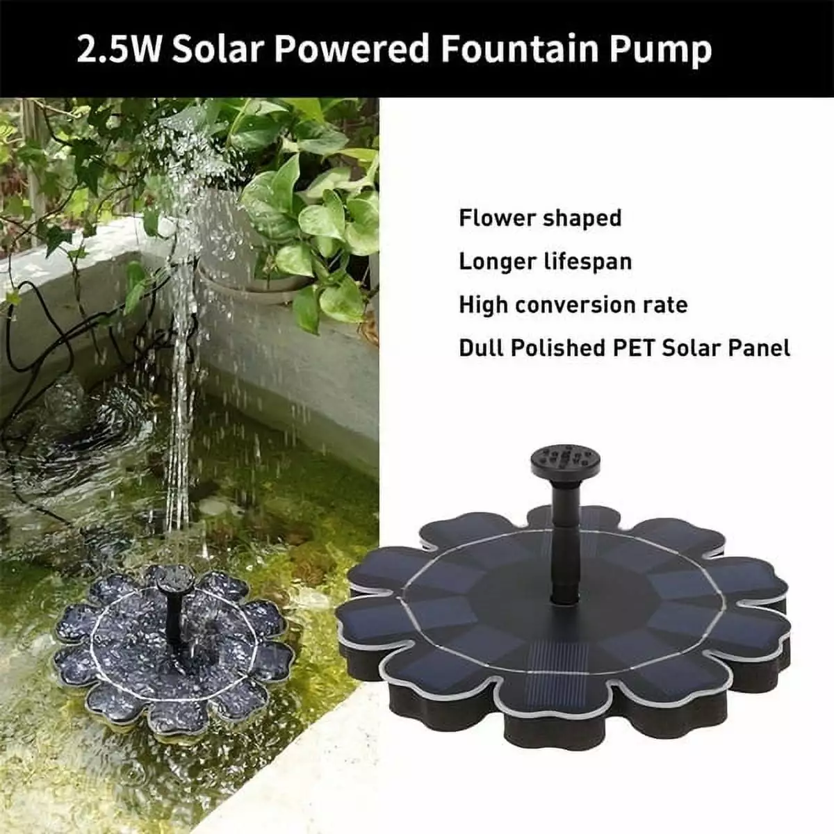 - It is an Eco Friendly solar pump and saves money and vivy your garden