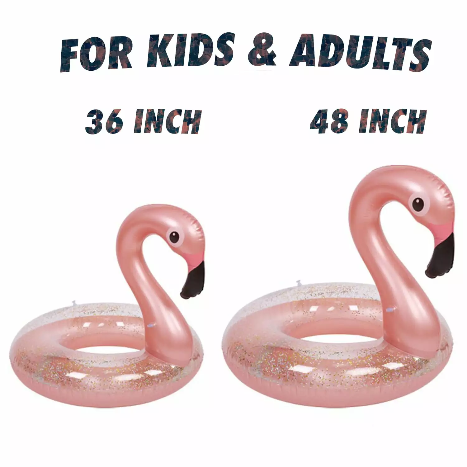 - ??VIVID COLORS ARE FUN??: This pool inflatable is bright. vivid. and attractive. Cute flamingo shape. sequins in the tube. large buoyancy. crystal clear. enjoy the cool water time. High-quality production technology ensures that the color on it does not fall off. It is divided into 2 air chambers. This is specially designed so that it can float smoothly on water surface and allows you to inflate the inflatable pool floats more quickly and easily.