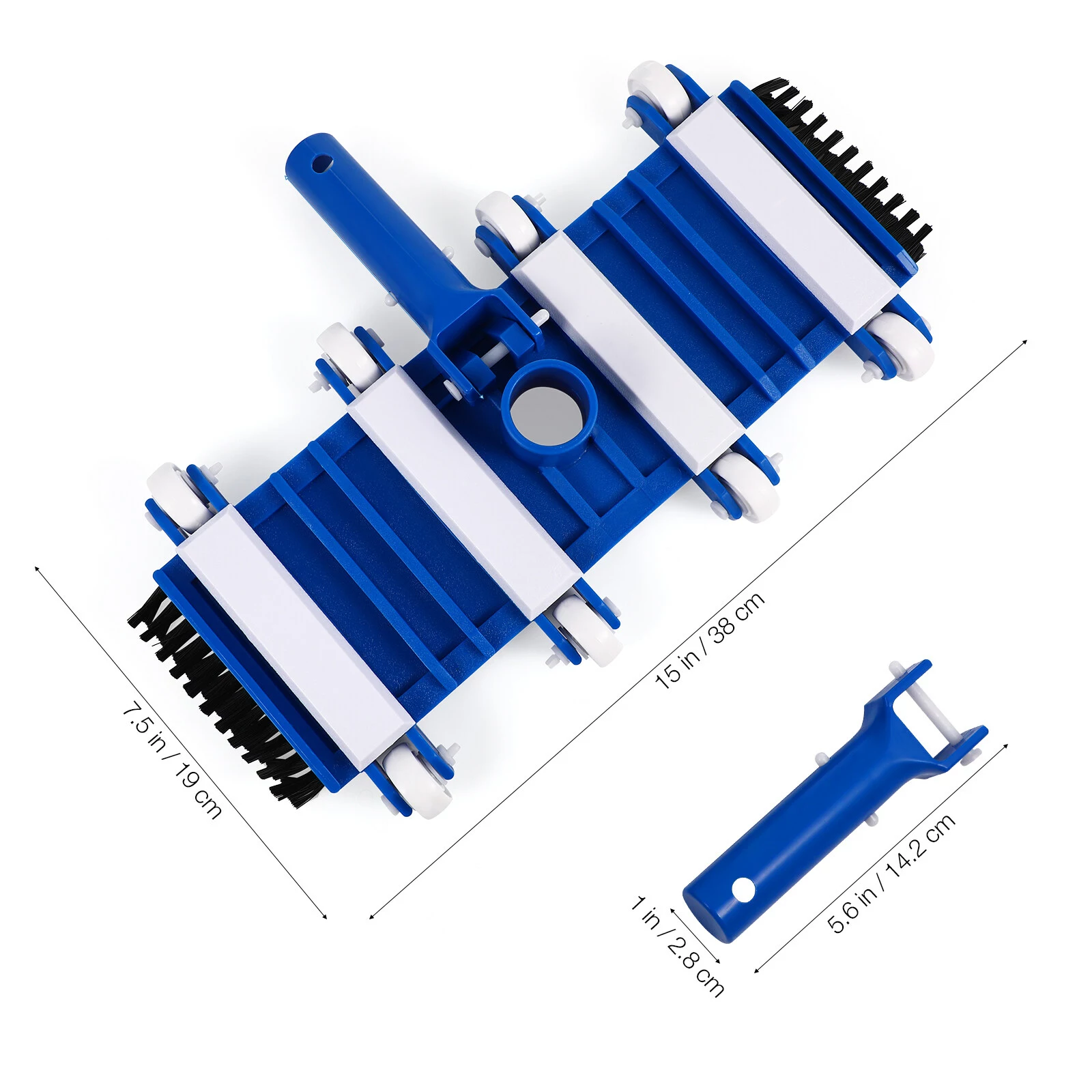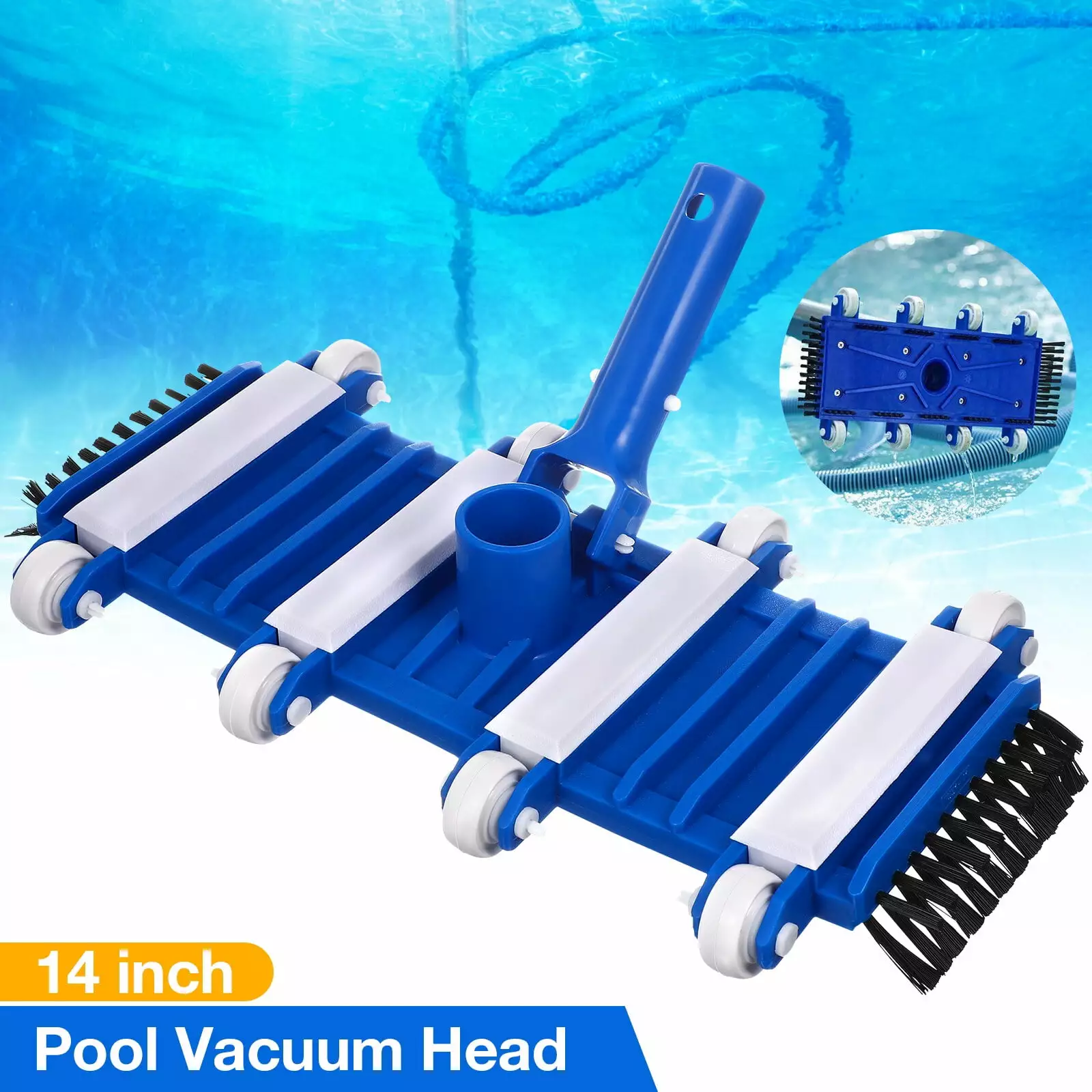 Swimming pool cleaner heads keep swimming pools looking clean and tidy. Included wheels make it easy to move around the pool; brushes make it easy to clean stains. Effectively remove leaves. debris. garbage. etc. in the swimming pool. Fits most standard telescoping poles and pool vac hoses.