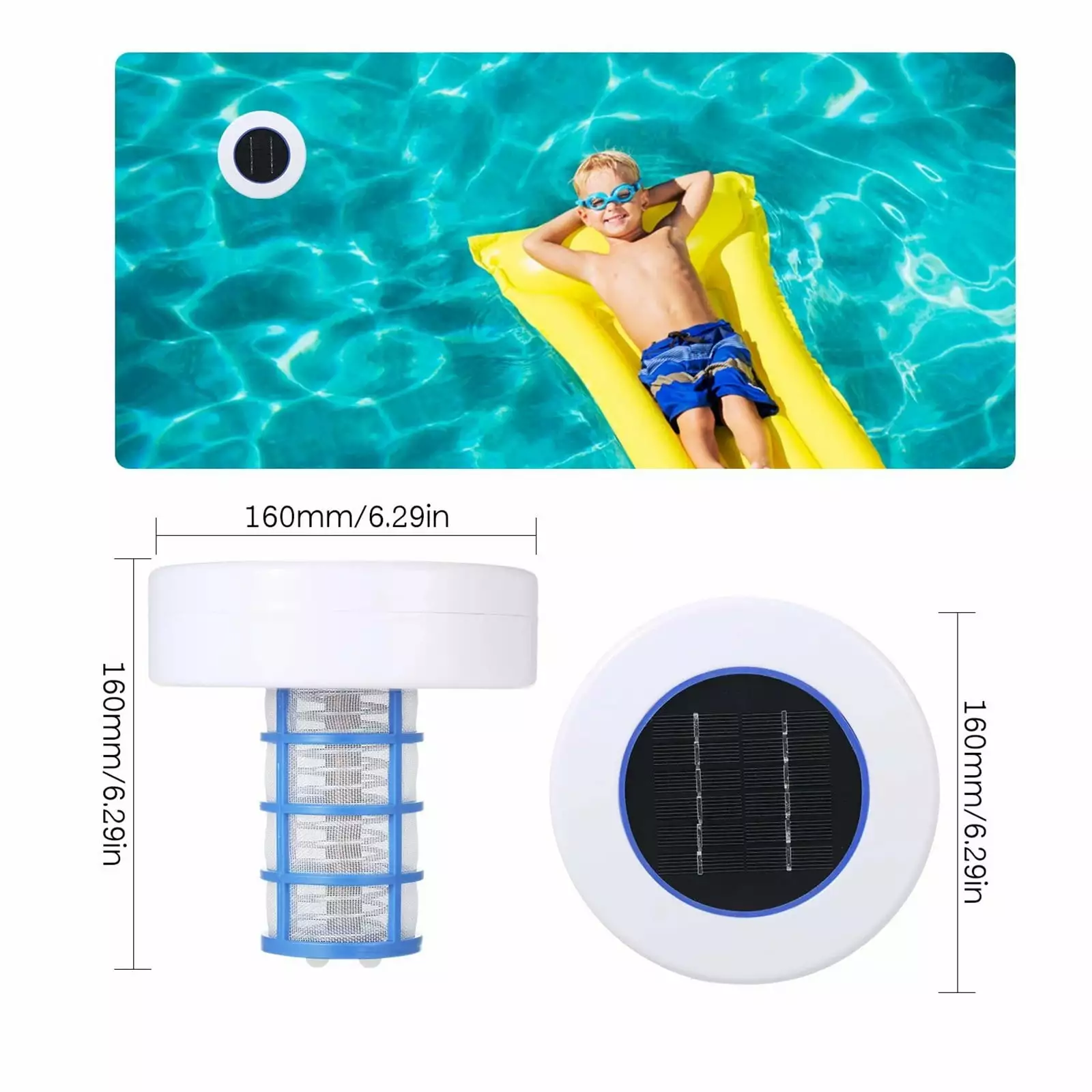 Floating pool purifier powered by a panel placed on the top of the purifier. self-power. and easy to use.