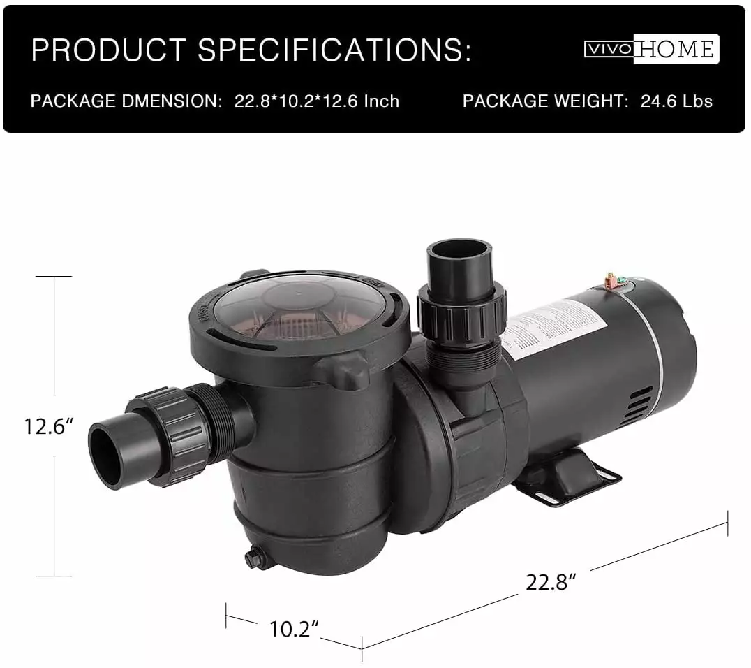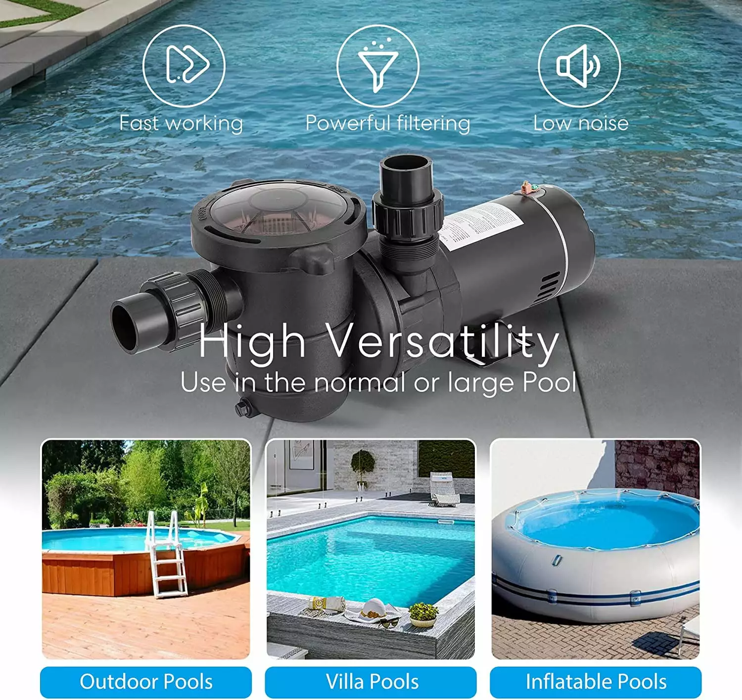 SPECSTAR swimming pool pump is made of a durable PP plastic shell and stainless motor that provides you with high-performance suction power and optimal flow. This pool pump runs very smoothly and is whisper quiet. Its airflow ventilation helps circulate water filtration and keeps your swimming pool clean and sanitary. Ideal for above-ground pools and spas in all types and sizes.