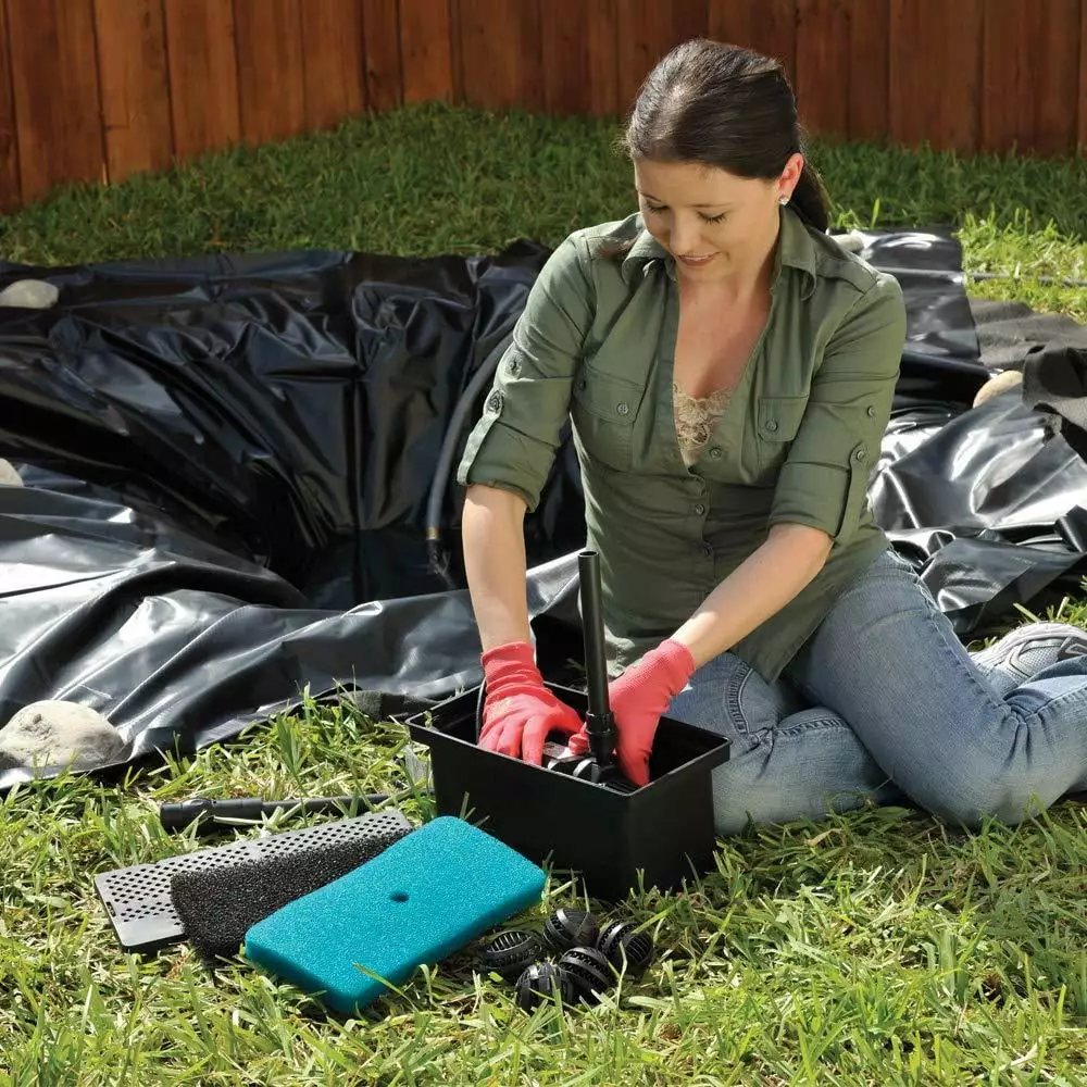 totalpond’s replacement filter pads for the universal pump filter box (mf13010) and complete filter kit with pump (mf13015) includes a coarse black filter pad that collects larger debris and a fine blue filter pad for smaller debris.