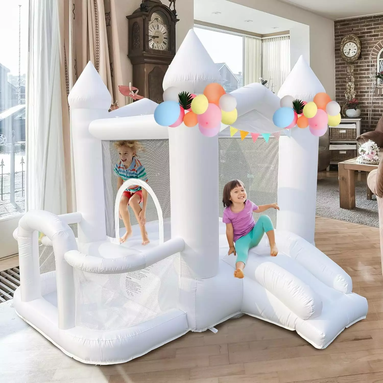White Bounce House. Linor 9FT Inflatable Bounce House for Kids. 840D Oxford Cloth Bounce House with Slide. Castle Style Bouncy House with Blower. Easy to Set up. Party & Birthday & Gift