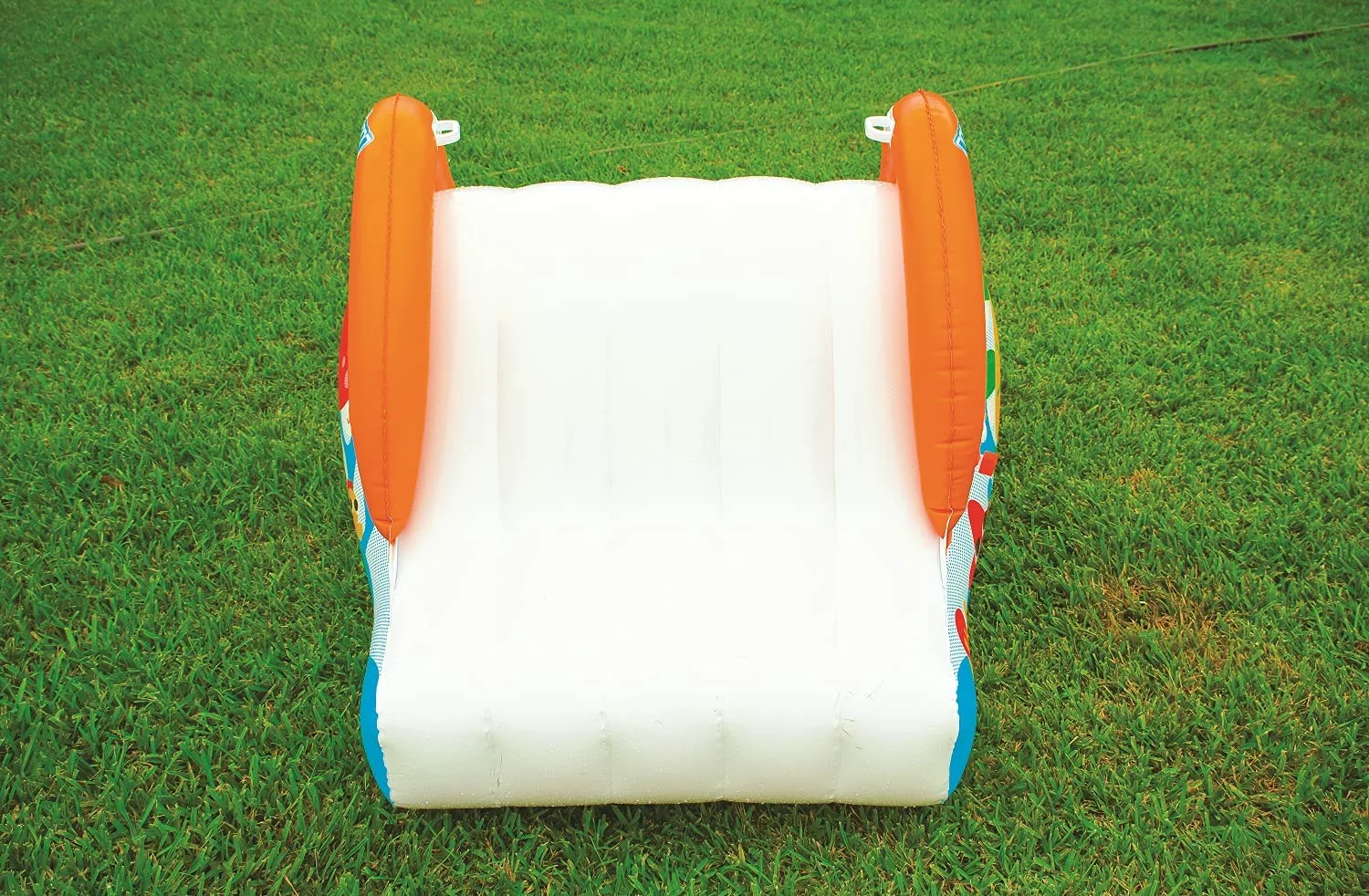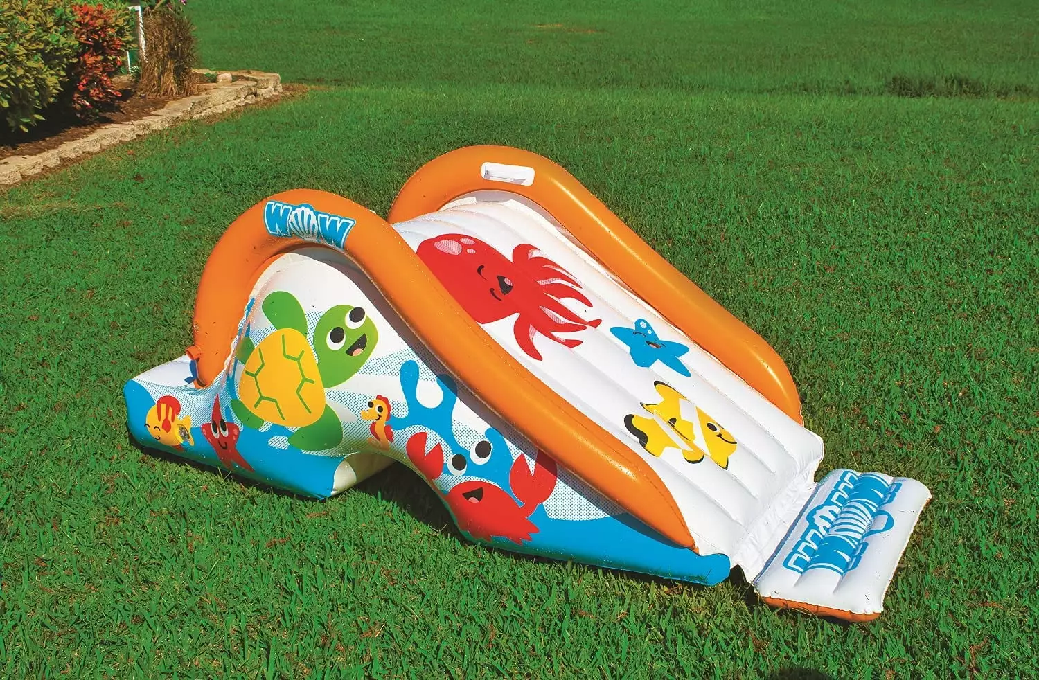WOW Sports brings you the best way to beat the heat easily this summer by cooling off in your own backyard! This backyard waterslide is perfect for those sweltering days! Add this our Soaker slide to your splash pad (Splash pad not included) to double the fun and quadruple the memories! The built-in soaker sprinkler creates a wet. fast and slippery sliding surface for endless sliding fun! The inbuilt soaker ensures that you don’t need any soaping for any sliding action. and can easily connect to any standard garden hose. Its EZ boarding step design comes with molded handles for ease of climbing and stability. At the bottom of the slide. there exists a slide bumper for easy connectivity and entry into the water! With inflated side rails to ensure a secure ride. along with the super-slick. yet durable PVC build of the waterslide ensures it stays with you for years to come! Pair this with our range of water splash pads for endless fun. every summer! Dimensions (L x W x H): 78 x 42 x 31 inches